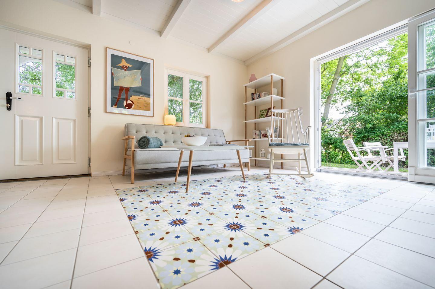 Das Schwedenhaus Gudderitz 1 ist eine moderne, helle Doppelhaushälfte auf der Halbinsel Wittow – ideal für Familien mit Kindern und befreundete Paare (max. 4 Personen). Skandinavischer Stil prägt das Haus: klare Linien, natürliche Materialien, freundliche Farbakzente. Der offene Wohn-/Essbereich mit gut ausgestatteter Küche ist gemacht für unkomplizierte Familienmomente – kochen, spielen, ausruhen. Große Fenster bringen viel Tageslicht ins Innere; von hier führt der Weg direkt auf die möblierte Terrasse mit Blick ins Grüne.