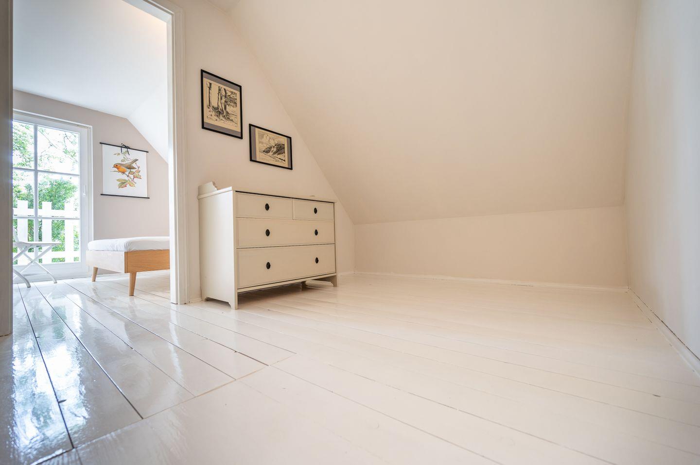 Zwei Schlafzimmer mit Doppelbetten bieten erholsame Ruhe nach Strand, Radtour oder Inselausflug. Für ein entspanntes Ankommen steht ein Parkplatz direkt am Haus bereit. Das Haus liegt auf einem ca. 1.600 m² großen Naturgrundstück mit altem Baumbestand – Platz zum Durchatmen und für kleine Entdecker, fernab vom Alltagslärm.