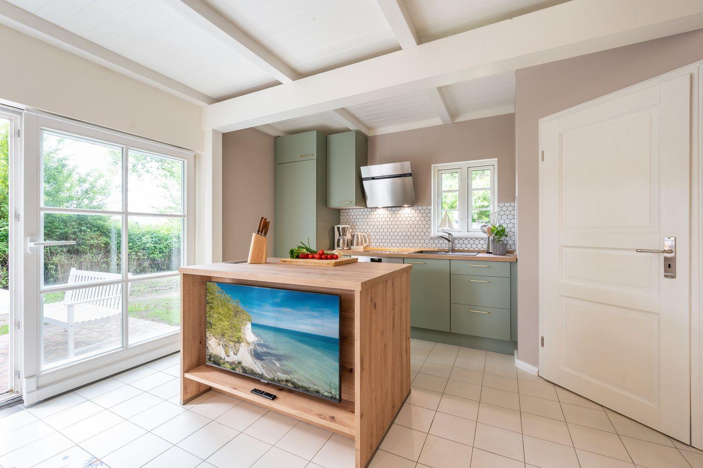 as Schwedenhaus Gudderitz 2 ist eine moderne, helle Doppelhaushälfte auf der Halbinsel Wittow – ideal für Familien mit Kindern und befreundete Paare (max. 4 Personen). Der Look: skandinavischer Chic mit klaren Linien, natürlichen Materialien und freundlichen Farbakzenten. Der offene Wohn-/Essbereich mit gut ausgestatteter Küche ist auf gemeinsame Zeit ausgelegt – kochen, spielen, zusammensitzen. Große Fenster holen viel Tageslicht ins Haus; vom Wohnzimmer geht es direkt auf die rückwärtige Terrasse. Hier genießt ihr euer Frühstück oder das Glas am Abend.