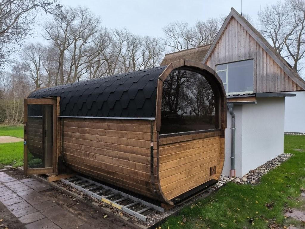Im Außenbereich gibt es eine Faßsauna mit Entspannungsraum zur gemeinschaftlichen Nutzung. Es ist ein abschliesbarer Fahrradschuppen mit Stromanschluss vorhanden
