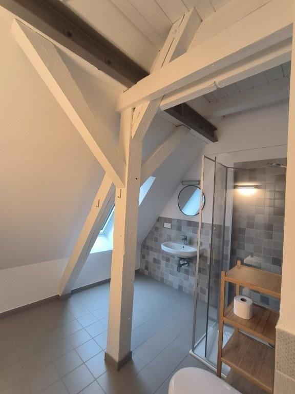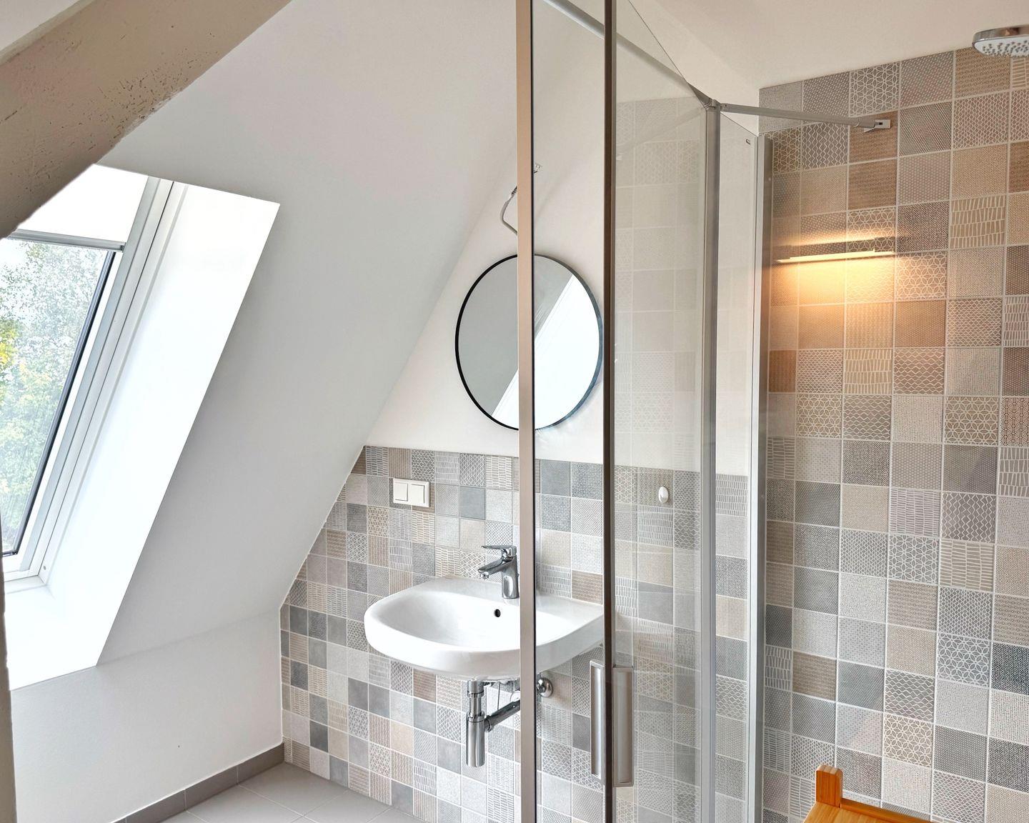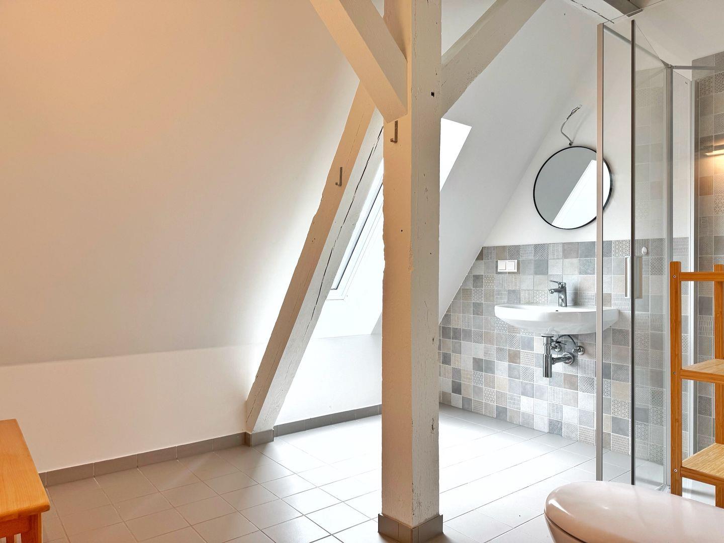 Das großzügige Badezimmer bietet eine bodentiefe Glasdusche, Waschbecken und WC. Außerdem gibt es noch ein zweites Badezimmer mit Dusche und WC.