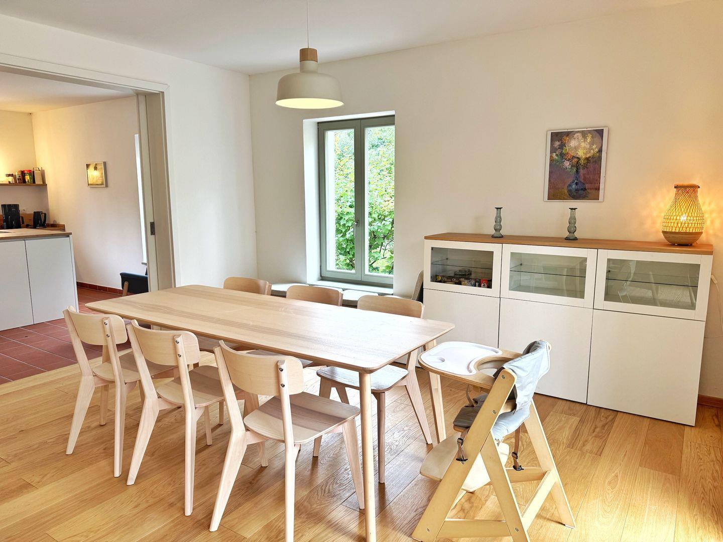 Beide Wohnungen wurden mit Naturmaterialien saniert: Zellulose - und Hanfdämmung, Lehmputz an den Innenwänden und Holzfussböden. Die Räume sowie die Aussenanlagen sind sehr grosszügig gestaltet, so daß auch im Winter Indoorulaubsfeeling garantiert ist
