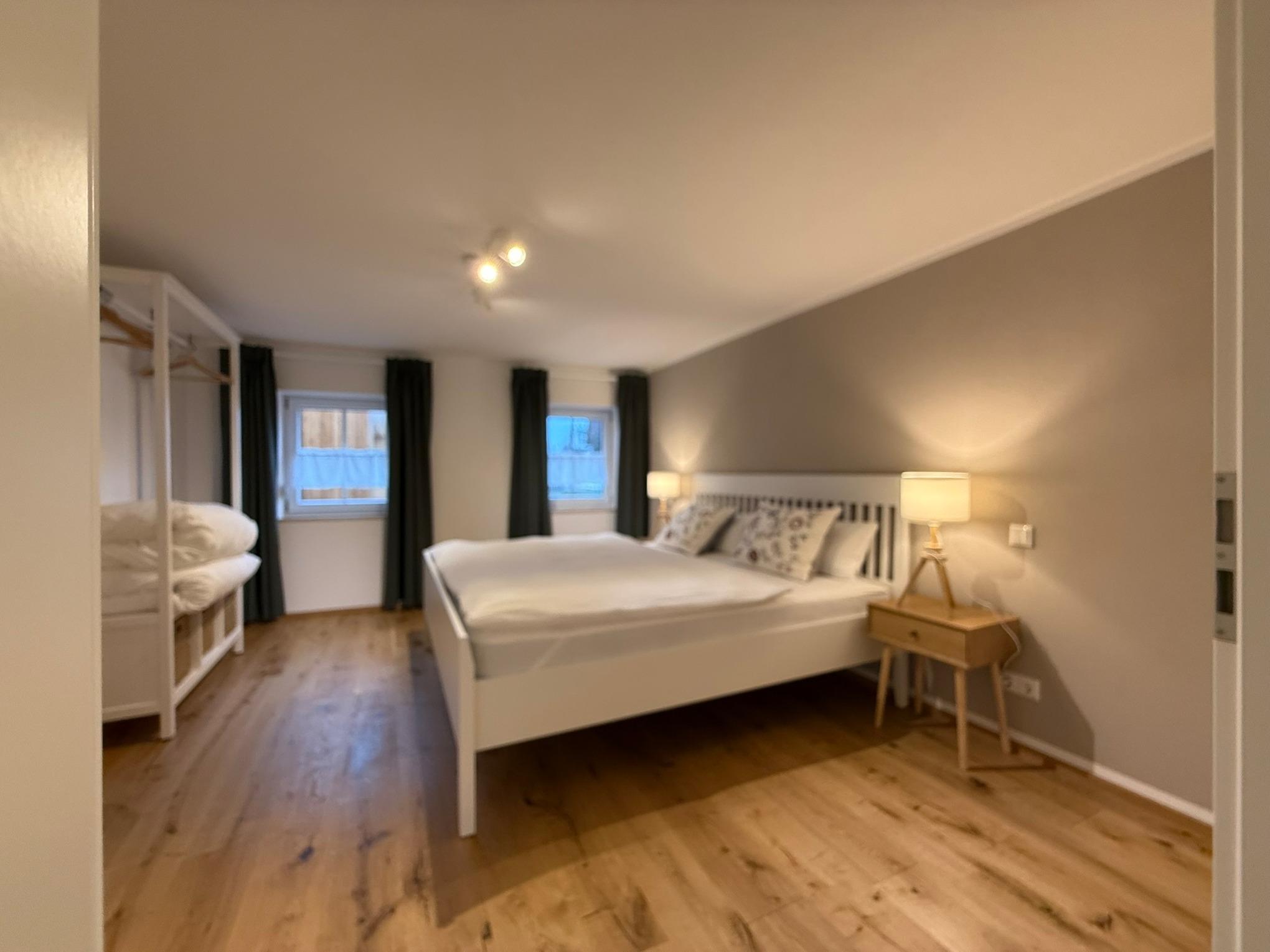 Unsere von 2023 bis Ende 2024 kernsanierte, moderne, barrierereduzierte Ferienwohnung mit Fußbodenheizung, separaten Eingang und PKW-Stellplatz befindet sich in der Einliegerwohnung unseres Altbaus im Erdgeschoss.