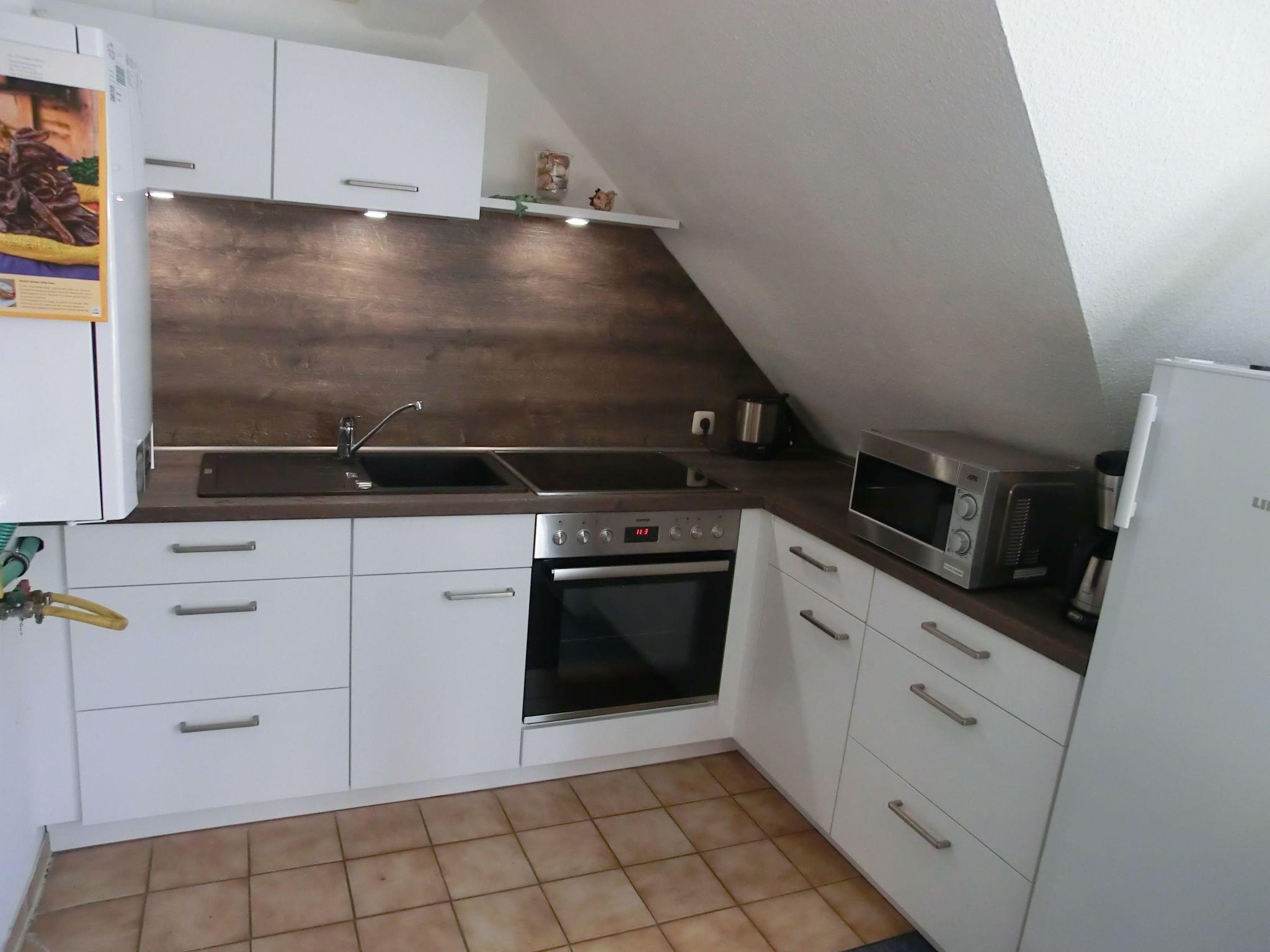Bettenanzahl:Schlafraum 1: Doppelbett 180x200 cmSchlafraum 2: Offene Schlafkoje (idealerweise für Kinder) mit zwei auf dem Boden liegenden Matratzen 100x200 cm,Hinweis: Das zweite Schlafzimmer ist eine offene Schlafkoje für 2 Personen im Spitzboden die über eine Treppe im Wohnzimmer erreichbar ist. Alle Schlafräume besitzen Verdunklungsrollos bzw. Jalousien. Küche:Ceran Kochfeld plus Herd mit Backofen, Großer Kühlschrank mit Gefrierfach, Mikrowelle incl. Grillfunktion, Wasserkocher, Kaffeemaschine, Toaster, Eierkocher, Mixer. Badezimmer:Dusche (Innenbreite 100 cm !), WC, Waschbecken, Spiegelschrank, Föhn, Waschmaschine, Fenster. Wohnzimmer:Große Ecksitzgruppe mit Schlaffunktion falls der schnarchende Partner mal das Schlafzimmer verlassen muss, moderner Samsung smart Flachbild TV (55"), SAT-Anlage, DVD-BlueRay-Player, Radio-Musik-Anlage mit CD, Bluetooth, USB-Anschluss und Fernbedienung. Balkon:Südlage, 4 Gartenstühle, 1 Tisch, Sonnenschirm, Elektrogrill incl. Verlängerungskabel und ggf. Beistelltisch für den Balkon. Speziell für Kinder: Kinderhochstuhl der Marke Hauck, Typ Alpha +, Reisebett, Mahlstifte und –bücher, Spiele, Lenkdrachen, Puzzles, Strandmuschel. Speziell für Tennis Spieler:Unsere Gäste haben in der Sommerzeit die Möglichkeit kostenfrei einen Tennis Hartplatz auf dem Sportgelände bei der Schule zu nutzen. Gegen Vorlage der Kurkarte bekommen sie in der Cliner Quelle / Kurverwaltung den Schlüssel für den Platz. Haustiere: Auf Anfrage. Sonstiges: Im Jahre 2019 ist das Dach neu gedämmt und eingedeckt worden, das macht sich auch im Sommer bemerkbar da die Wohnung sich nicht so schnell aufheizt. Wenn es Ihnen doch mal zu warm wird können Sie durch die gegenüberliegenden Fenster schnell für Durchzug sorgen. Im Winter dagegen ist es immer schön warm :-) Da es sich um eine Wohnung im Dachgeschoss handelt sind z.T. auch Dachschrägen vorhanden, beachten Sie bitte hierzu auch unsere Foto`s.