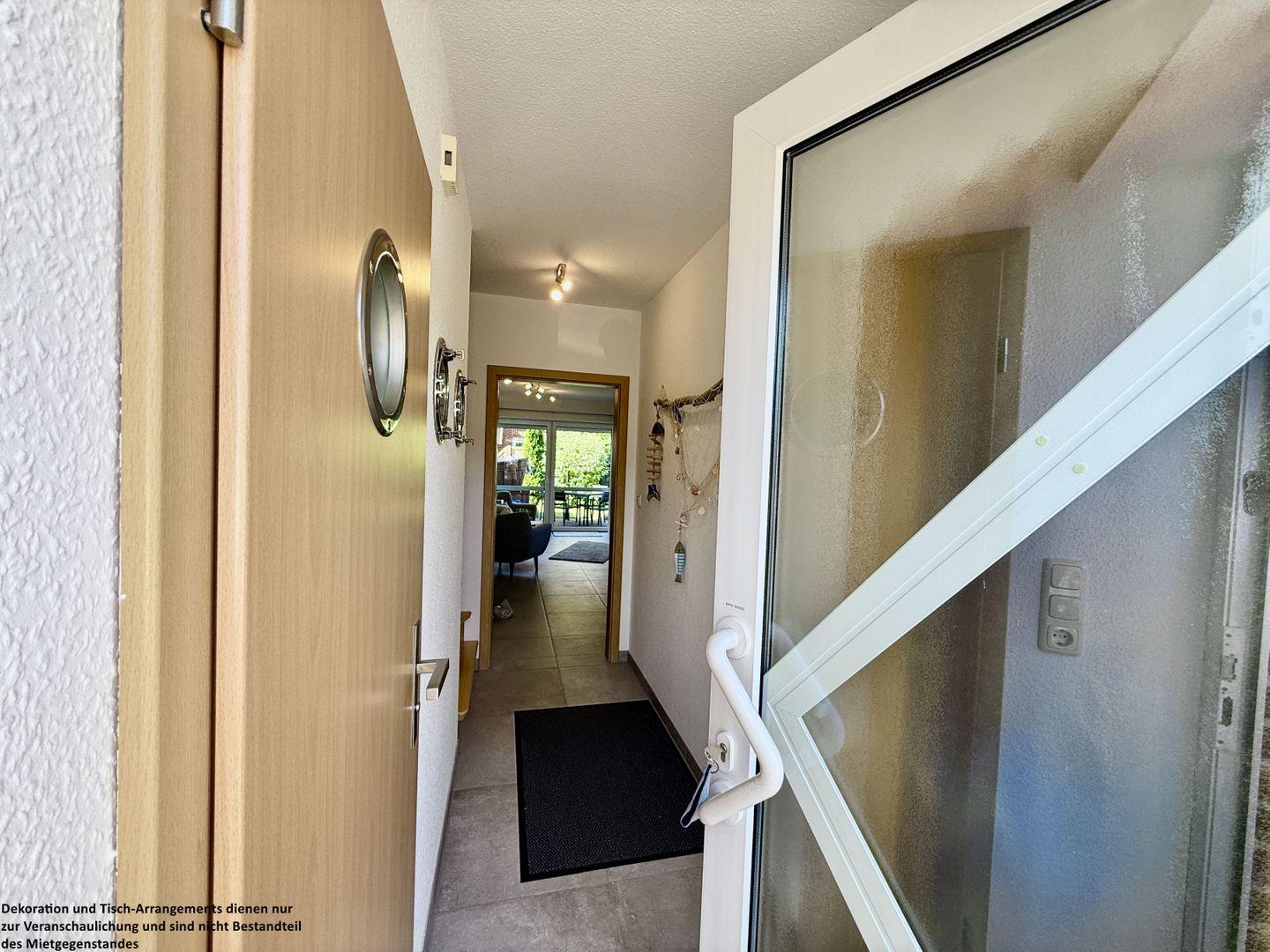 Bereits beim Betreten des Flurs empfängt Sie eine freundliche Atmosphäre. Helle Wände und ein heller gefliester Boden verleihen dem Eingangsbereich eine stilvolle Note