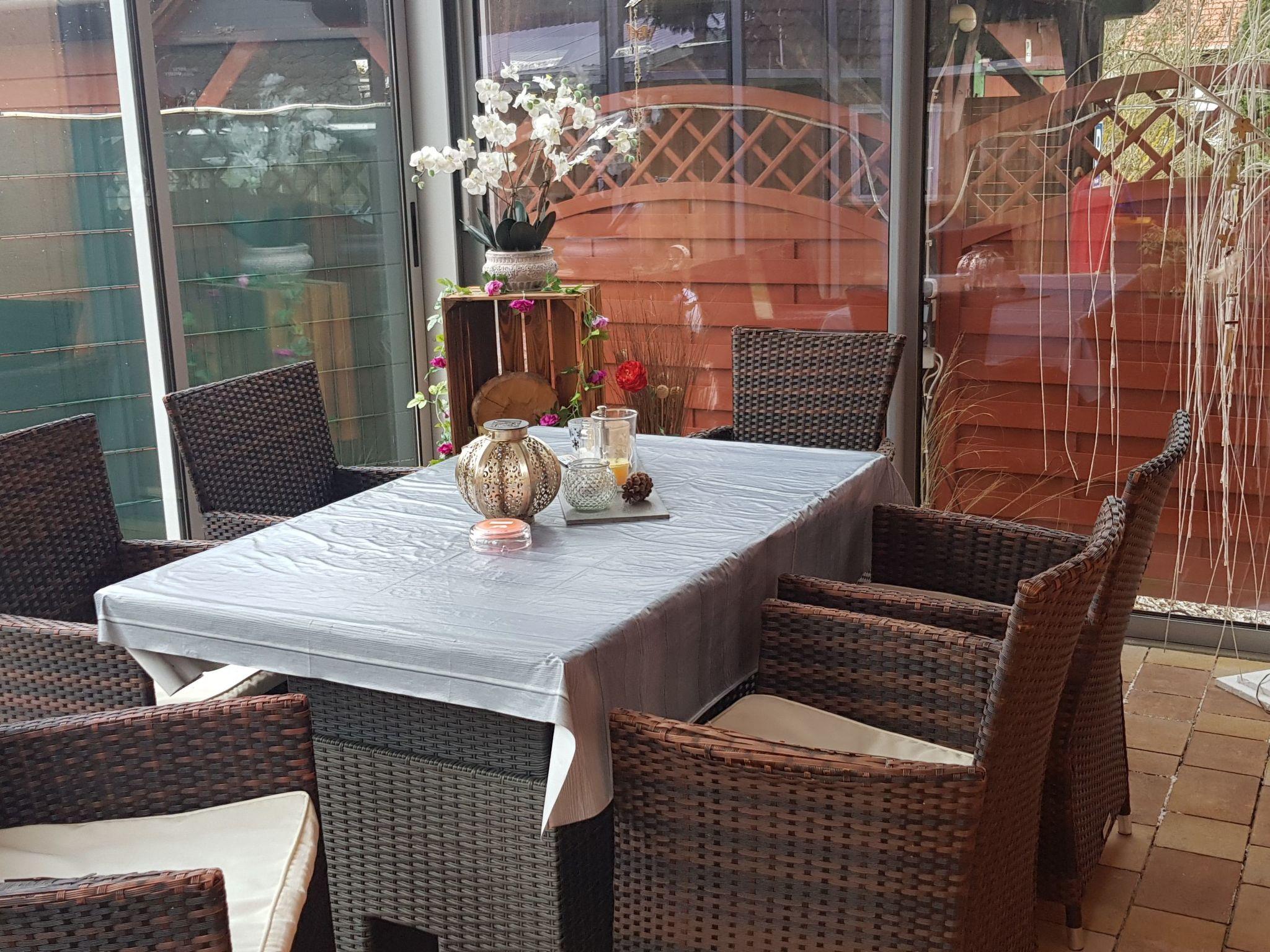 Außenbereich des Ferienhauses besticht mit einer Terrasse und einem Balkon, die zum Verweilen in der frischen Luft einladen. Der Garten, zur gemeinschaftlichen Nutzung, ist mit Gartenmöbeln, einem Grill und einem Sandkasten für die kleinen Gäste ausgestattet. Zusätzlich steht eine Aufladestation für Elektro-Autos bereit, um auch umweltbewussten Reisenden entgegenzukommen.