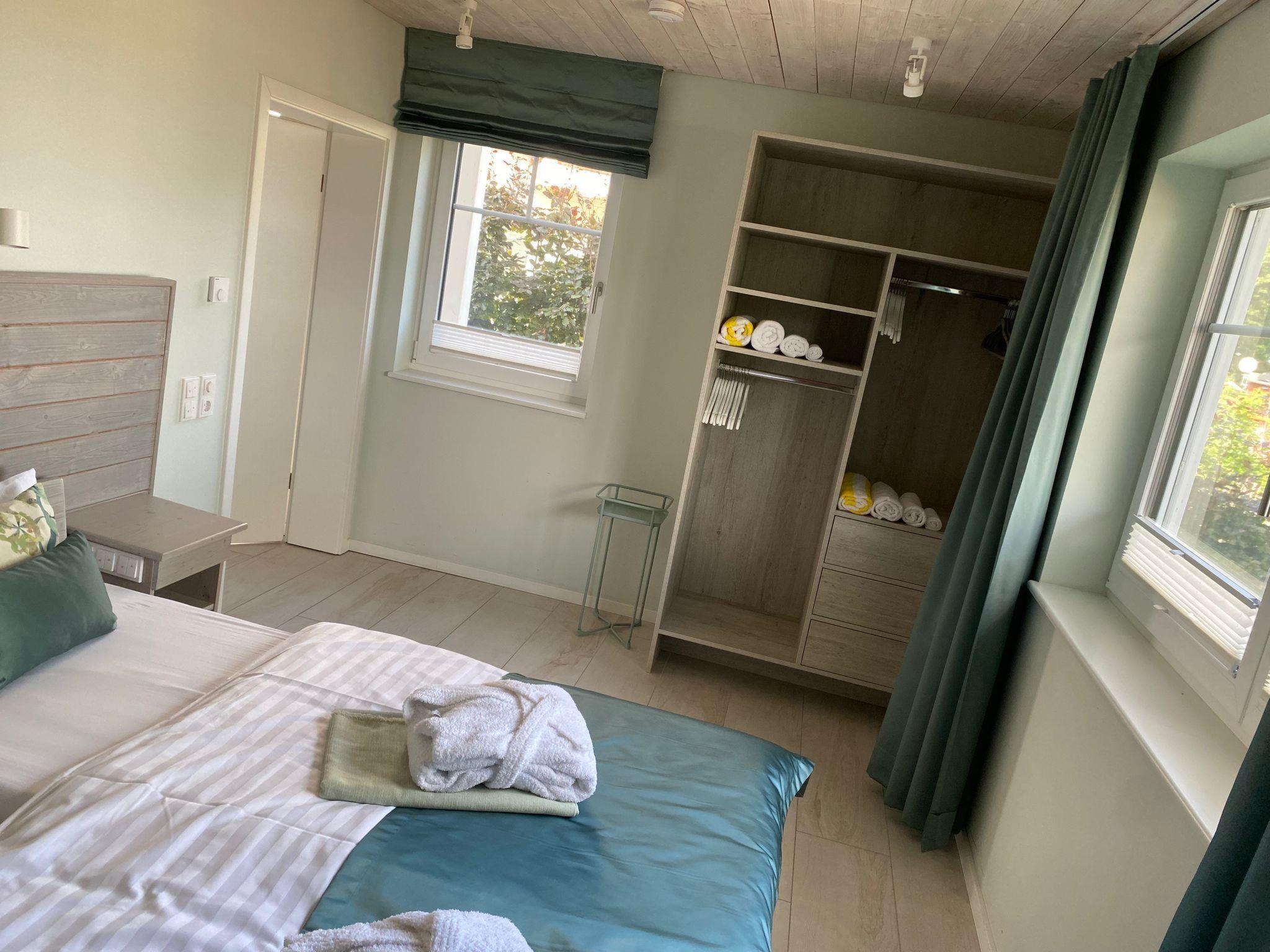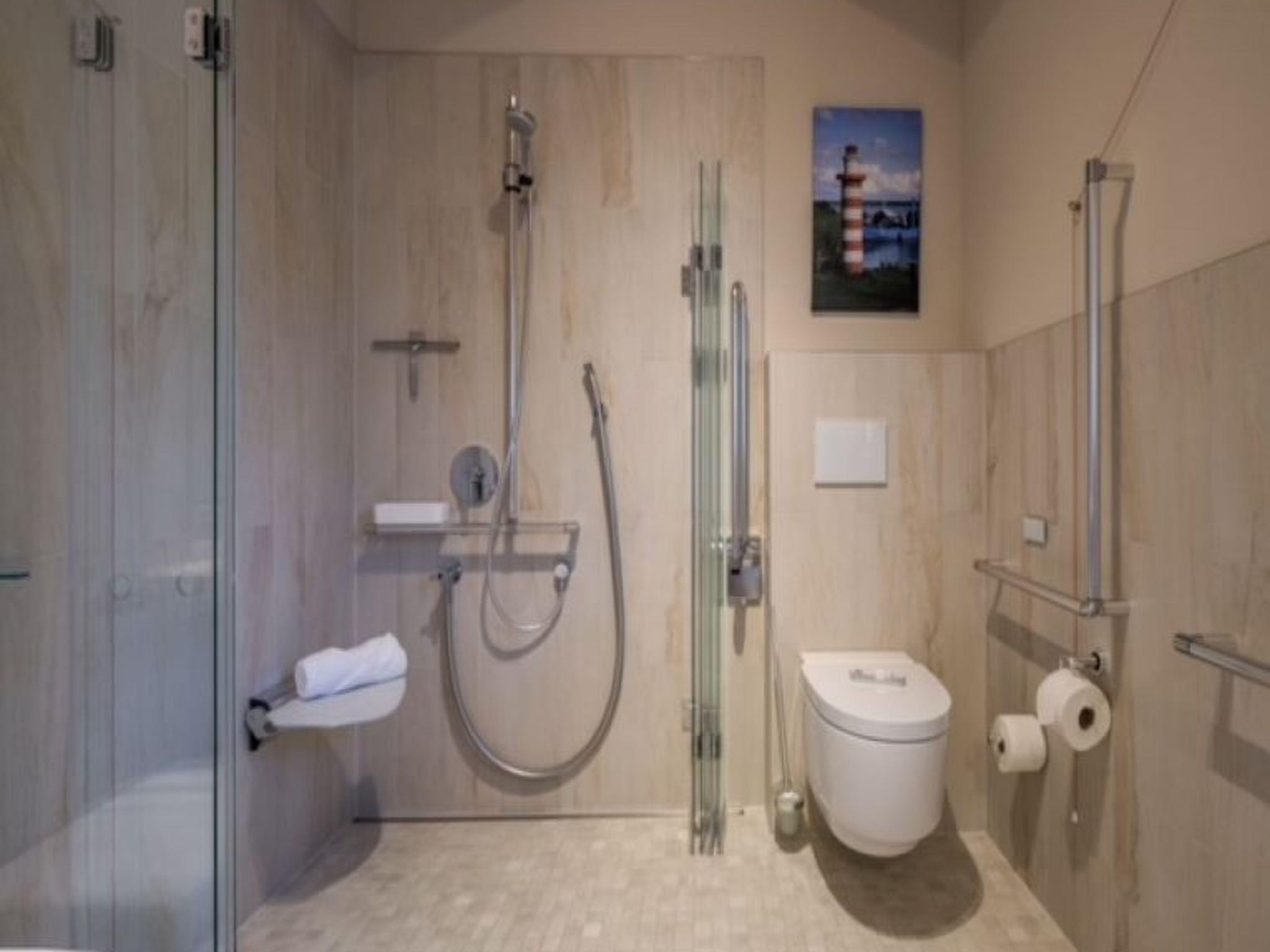3 helle Schlafzimmer mit Doppelbetten (2x 1,80m, 1x 1,60)3 Kleiderschränke Abdunklung in allen Schlafzimmern möglich 3 Badezimmer mit Dusche/WC inkl., Badezimmer im EG barrierefrei Privat-SPA im OG (Freistehende Badewanne und Sauna) Kinderbetten/Kinderstühle – auf Anfrage & kostenlos Kamin im EG Bettwäsche Handtücher Bademäntel 3 x Haartrockner Kosmetikspiegel kostenloses WLAN Safe 2 BalkoneDieses Angebot wurde nach den Kriterien der bundesweiten Kennzeichnung »Reisen für Alle« eingestuft und ist berechtigt, im Zeitraum September 2021 - August 2024 die Auszeichnung »Barrierefreiheit geprüft zu tragen.Alle prüfungsrelevanten Bereiche erfüllen die Qualitätskriterien der Kennzeichnung "Barrierefreiheit geprüft- barrierefrei für Menschen mit Gehbehinderung und teilweise barrierefrei für Rollstuhlfahrer".Barrierefreiheit auf einen Blick• Parkplatz für Menschen mit Behinderung• Ferienhaus, das im Erdgeschoss barrierefrei konzipiert ist• Gebäude stufenlos zugänglich• Alle für Gäste nutzbaren Räume im Erdgeschoss sind stufen- und schwellenloserreichbar• 90 cm Mindestbreite aller Durchgänge/Türen im Erdgeschoss• WC für Menschen mit Behinderung• Schwellenlose, große Dusche mit Duschsitz• Unterfahr- und höhenverstellbare Küchenzeile• Assistenzhunde willkommen