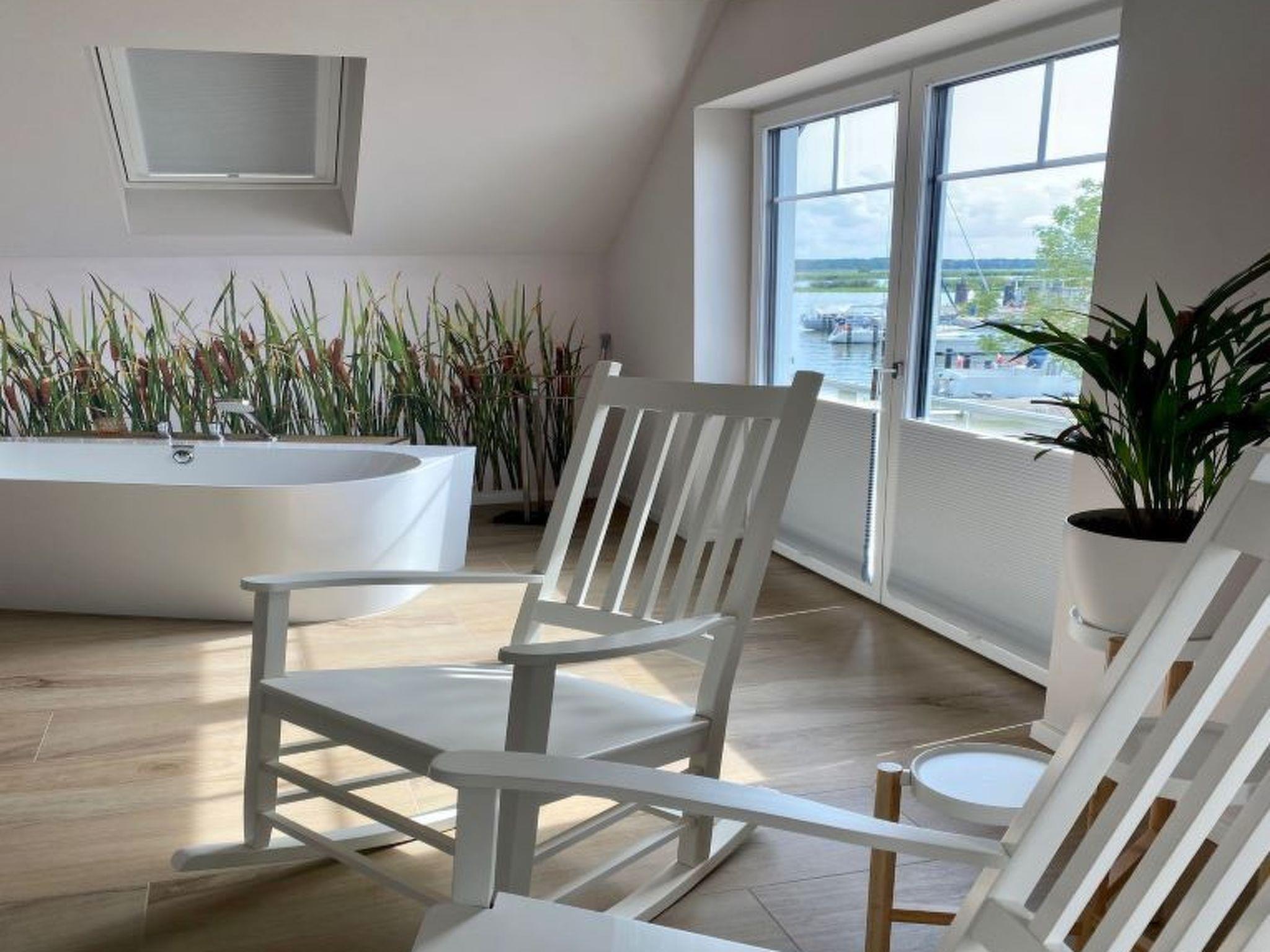 2 Terrassen mit Wasser- und Gartenblick laden zum Verweilen ein.