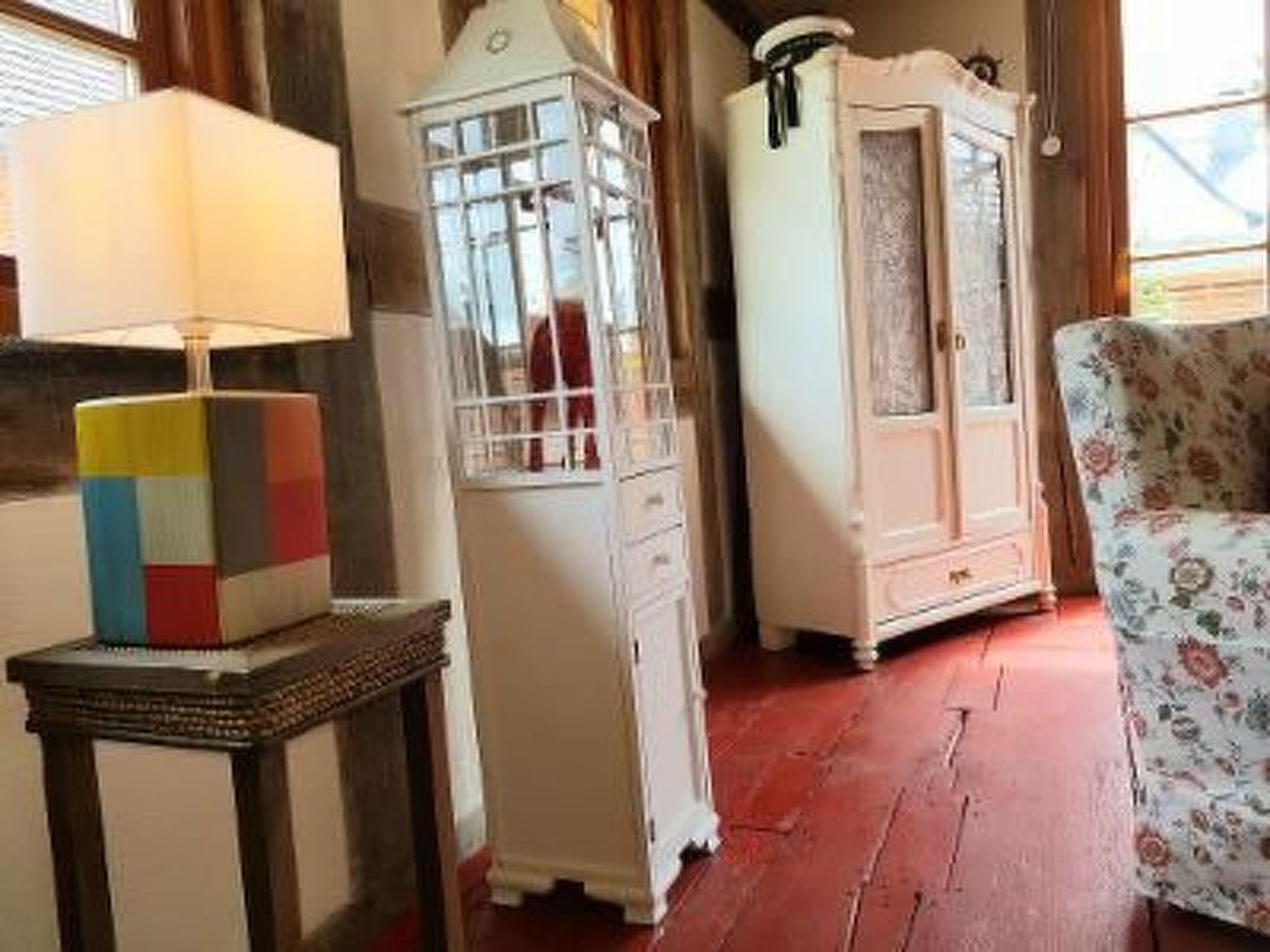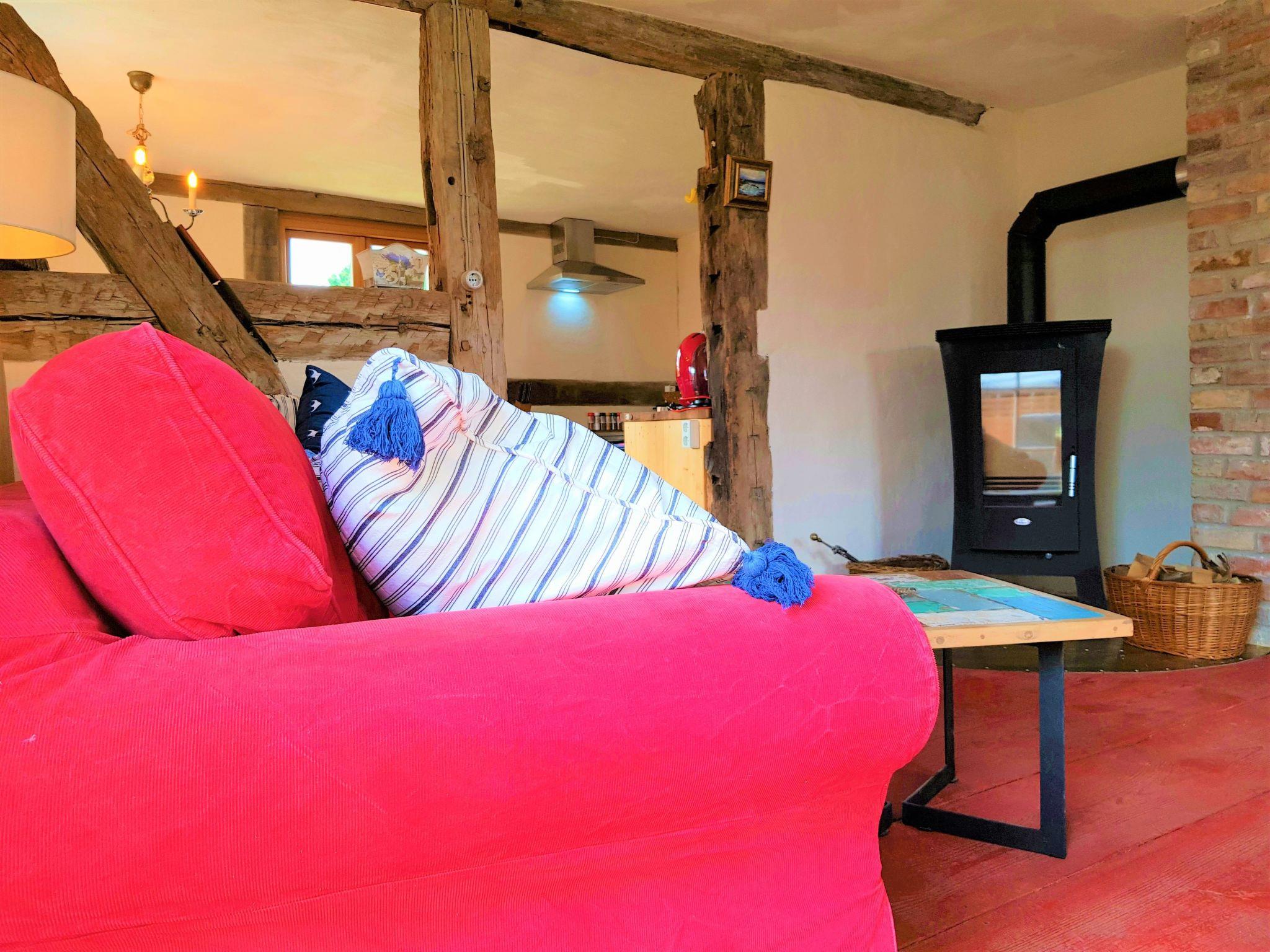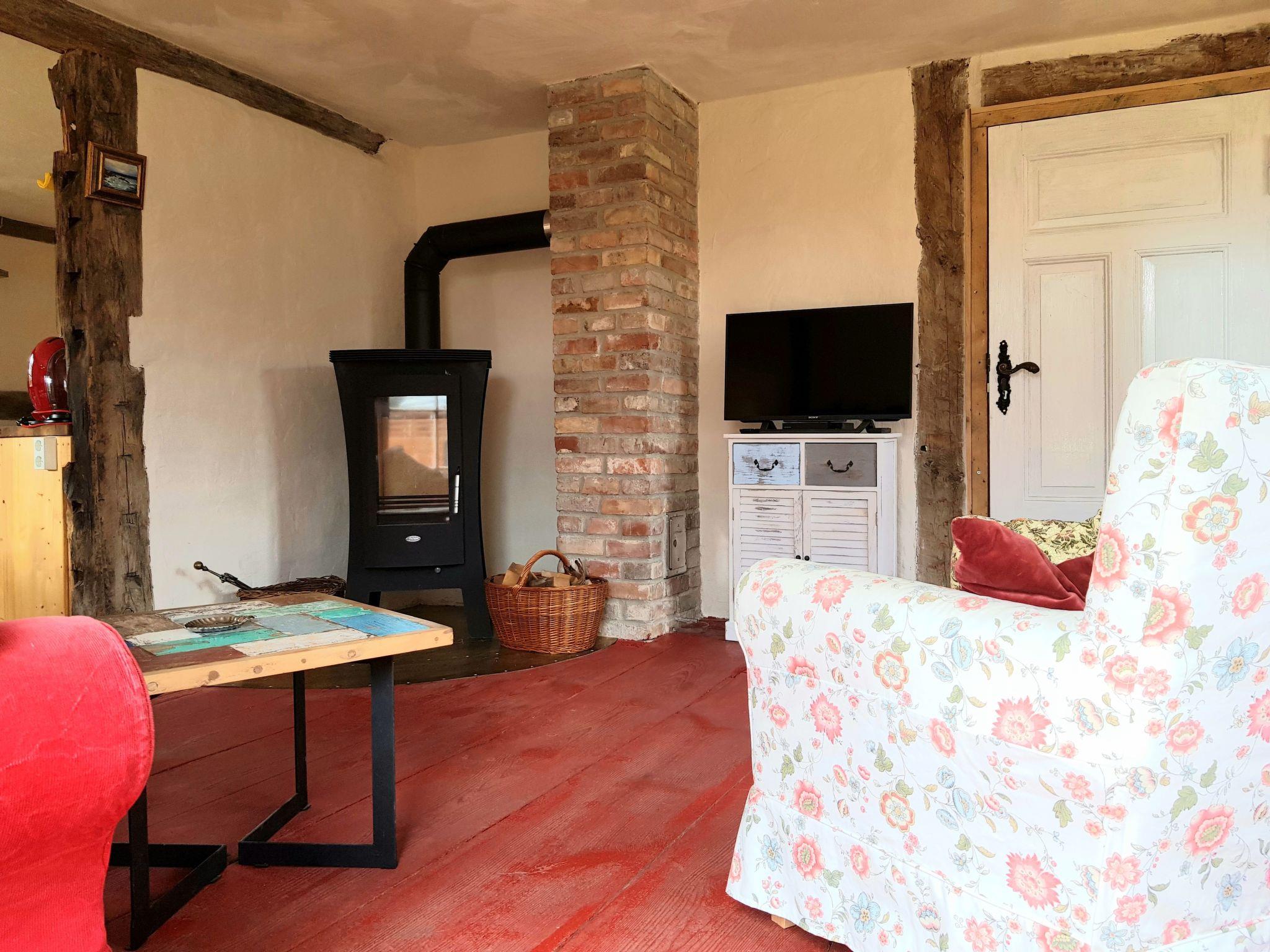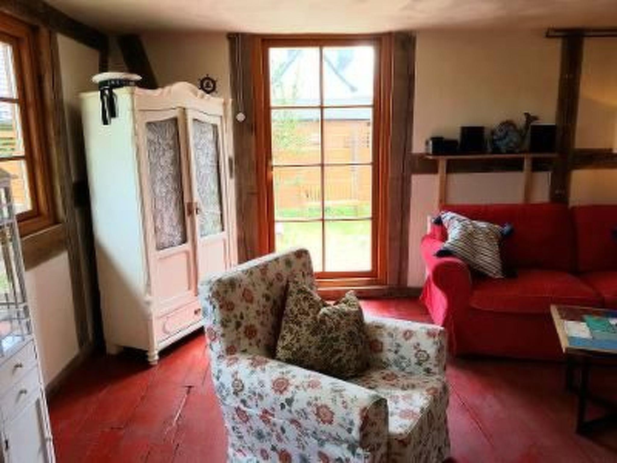 Die Ferienwohnung "Traudel" mit separatem Eingang vom Garten aus. Erdgeschoss: Flurbereich mit Garderobe. Wohnzimmer: antiker Vitrinen Schrank, Kommode, kleiner origineller Deko-Vitrinen-Schrank, Flach-TV, kleines Beistelltischchen, Sitzmöbel, kleiner Couchtisch, bequemes 2er Sofa, Stehleuchte, kleine Lampen, Bücherregal umgebaut aus antikem Holzboot, Kamin, Blu-Ray- und DVD-Player, Bücher und CD´s, Korb für Kaminholz, Musikanlage (Radio, USB und CD) Küche: Küche mit Sitzbereich für 2-4 Personen, hist. Delfter Kronleuchter, Retrokühlschrank mit Gefrierfach, Vollküche mit mehr als genügend Töpfen, Pfannen, Besteck, Salatschüsseln, Tellern, Weingläsern, Mehrzweckgläsern, Sektgläsern, Kaffeebechern, Kaffeetassen, Mikrowelle, Espressomaschine, Kaffeemaschine, Mixer, Schneidebrett, Toaster, Wasserkocher, Kochutensilien, Gewürzregal, Schubläden, Geschirrspüler für 4 Personen, Waschmaschine, Regale, kleine Erstausstattung bestehend aus 2 Geschirrtüchern, 2 Espresso-Kapseln, einigen Kaffeefiltern, 1 Rolle Küchenpapier und einigen Geschirr-Spültaps