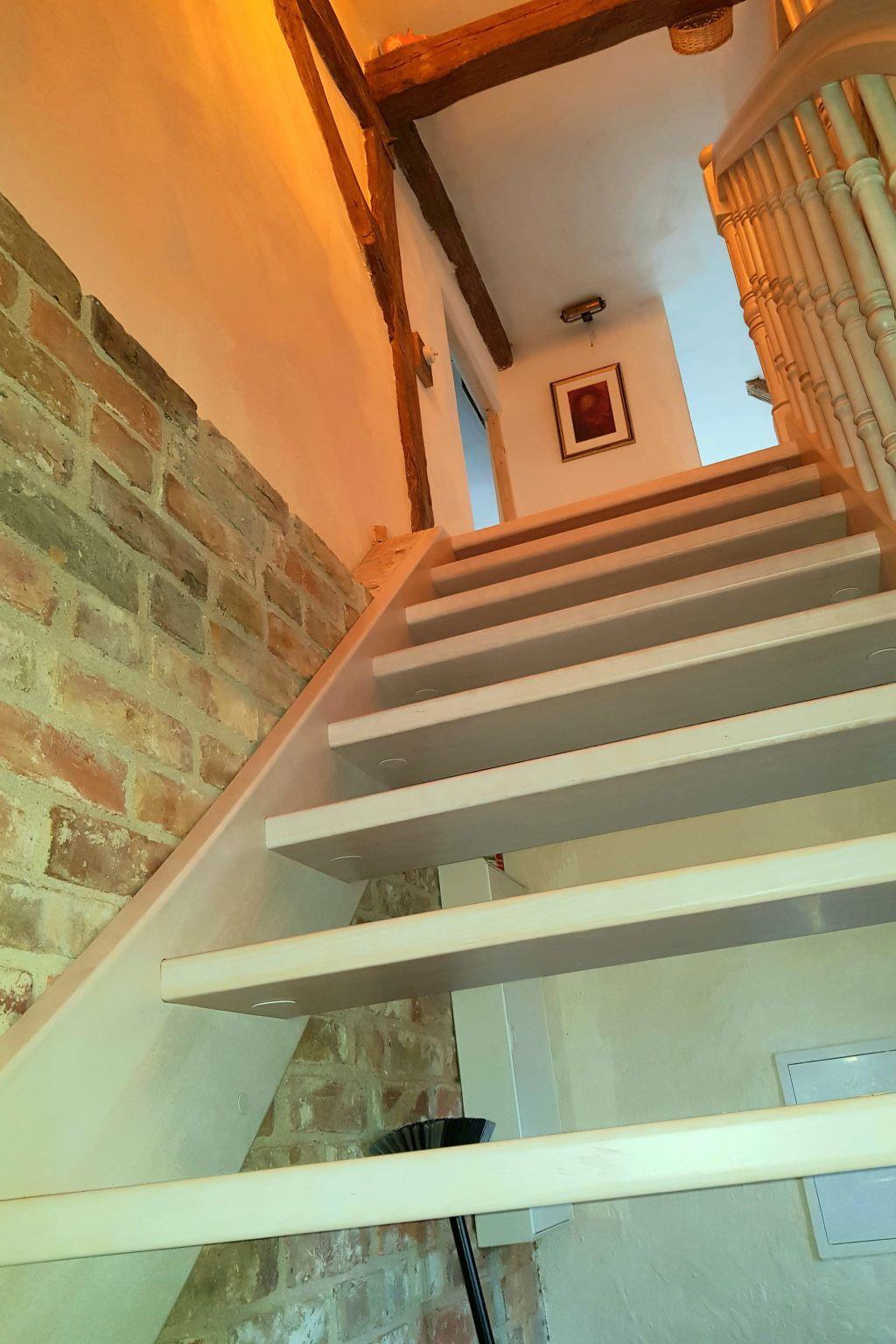 Im Winter ist es wohlig warm, dank der guten Isolation des Hauses und modernster Heiztechnik. Ein Kaminofen in jeder Wohnung kann für weitere schöne Momente an kalten Wintertagen sorgen. Die Decken der Stuben sind 2,17 m hoch, alle anderen Decken deutlich höher. Alle Türen / Treppen Durchgänge über 1,82 m. Beide Wohnungen verfügen über je eine Treppe ins Obergeschoss, die sehr gut geh bar ist.