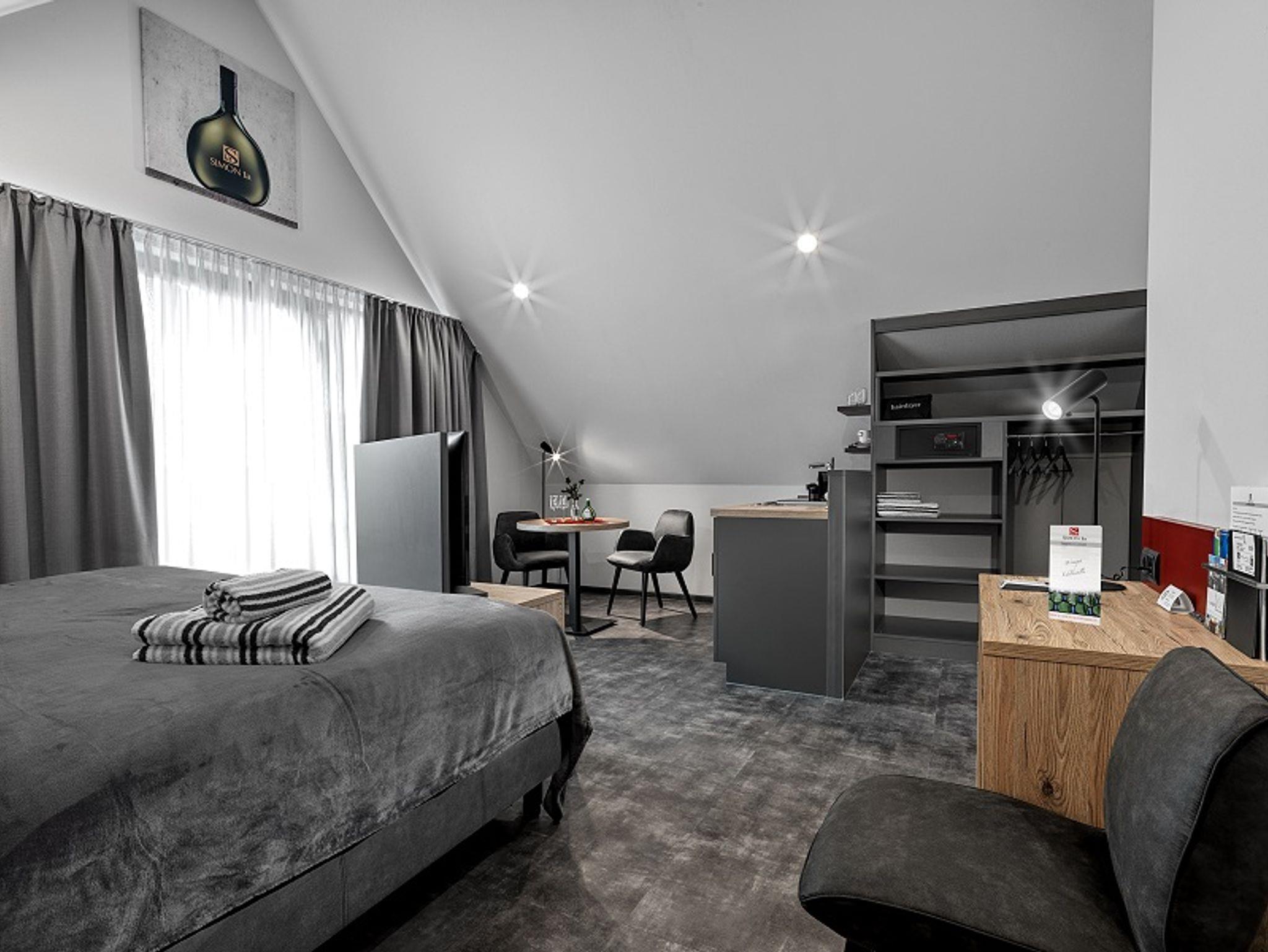 Jedes unserer stilvoll eingerichteten Nichtraucher-Zimmer hat seinen eigenen Wein-Charakter. Ein modernes Boxspringbett mit allergikerfreundlicher Bettwäsche lädt zum Entspannen ein. Alle unsere Betten können sowohl als Einzel- als auch als Doppelbetten genutzt werden. In allen unseren modernen Zimmern finden Sie einen Flat-Screen Sat-TV, einen Schreibtisch mit USB Steckdose, gratis WLAN und einen Hotelsafe. Für das optimale Klima in jeder Jahreszeit bieten wir Ihnen eine individuell regelbare Klimaanlage und eine Fußbodenheizung. Genießen Sie gerne einen Kaffee aus der zimmereigenen Nespresso Kaffeemaschine oder probieren Sie das bereitgestellte Teesortiment. Das großzügige Badezimmer verfügt neben einer Walk In-Regendusche über einen beleuchteten Kosmetikspiegel, einen Föhn und ein WC. Gerne stellen wir Ihnen auf Wunsch Hotelkosmetik und Hygieneartikel bereit. Um den Abend gemütlich ausklingen zu lassen, bedienen Sie sich gerne an dem integrierten Weinkühlschrank, welchen wir Ihnen gerne gegen Aufpreis füllen.