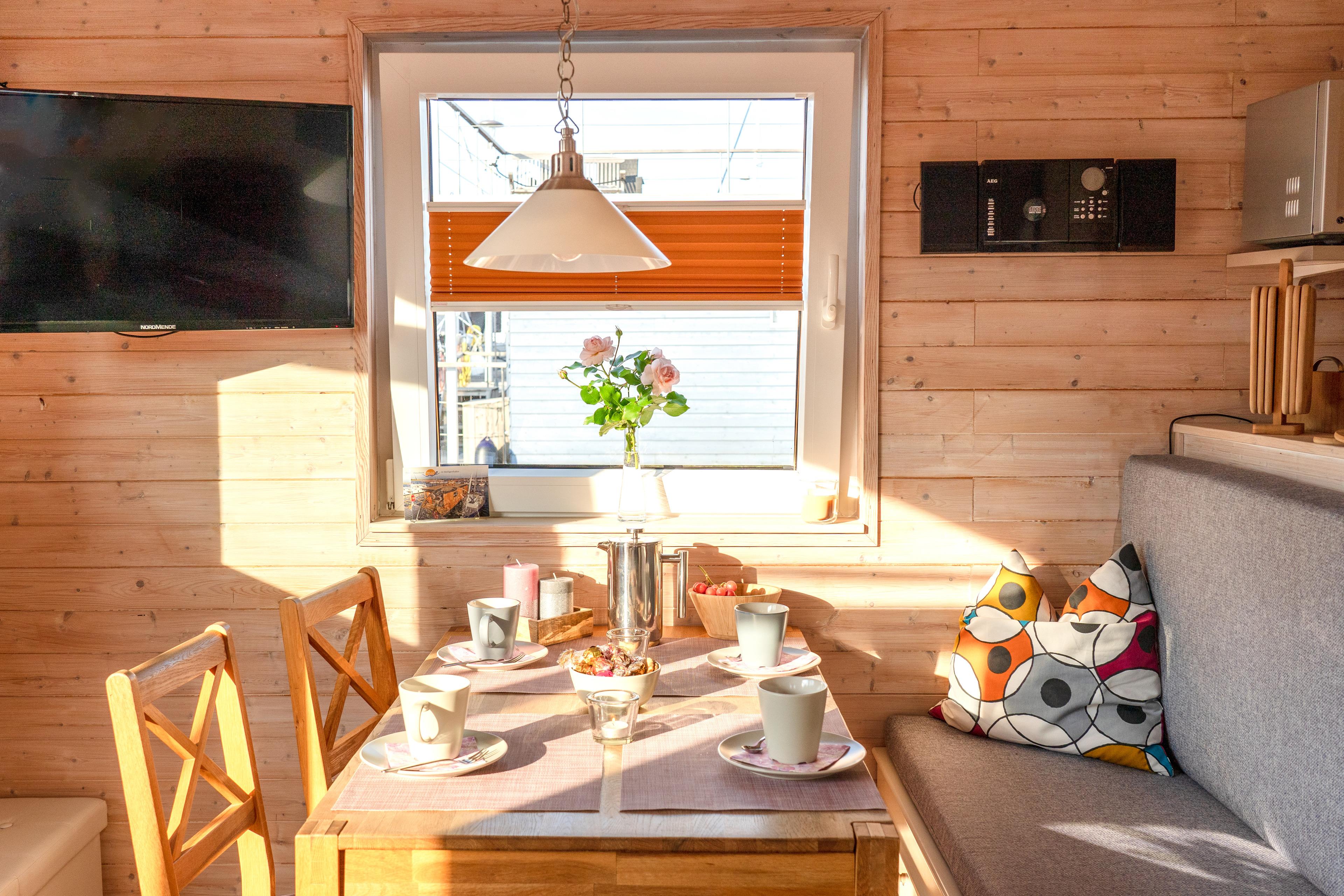 Morgens werden Sie von Möwen geweckt und können schon vom Bett aus die Hafenatmosphäre erleben. Ein Highlight ist, dass Sie direkt vom Bett oder vom Freisitz bei einer Tasse Kaffee den Sonnenaufgang genießen können.