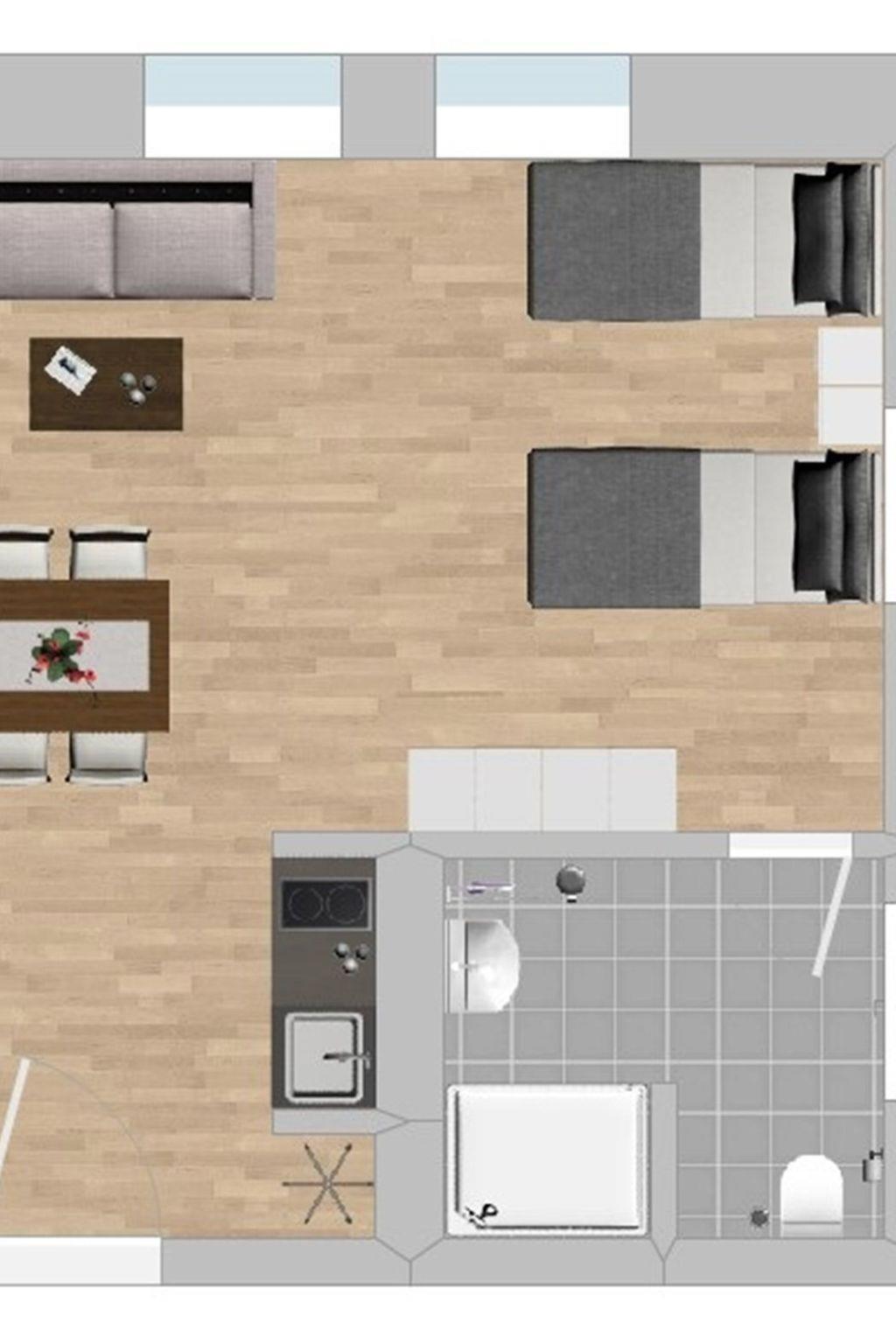 Auf dem Grundriss der Unterkunft können Sie die genaue Zimmer- und Bettenaufteilung sehen.