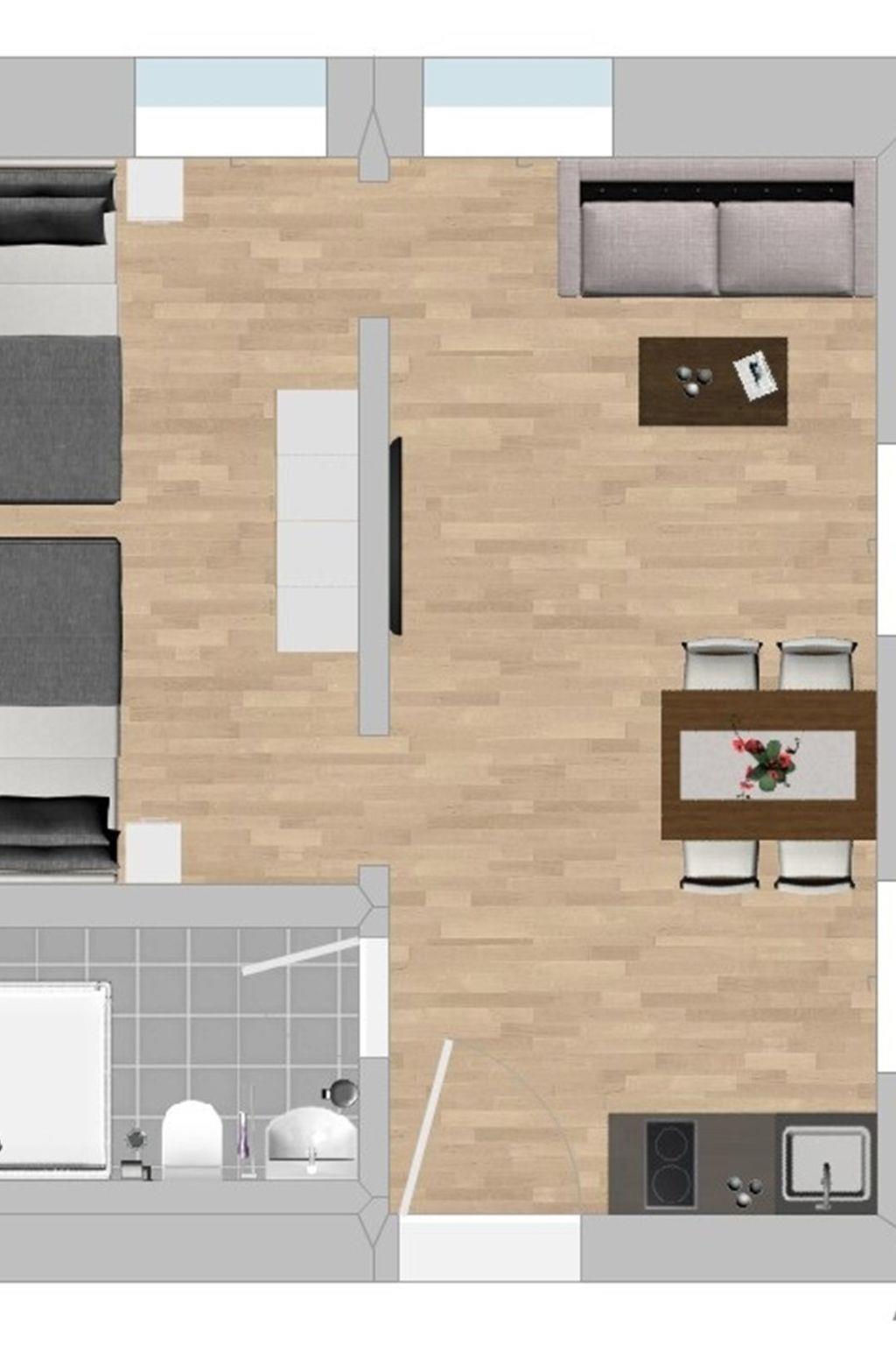 Die möblierte 33 m² große Obergeschoss in Amberg umfasst ein Schlafzimmer mit 2 Einzelbetten und ist für bis zu 2 Personen geeignet. Es besteht die Möglichkeit, dass eine dritte Person auf dem Sofa schläft.