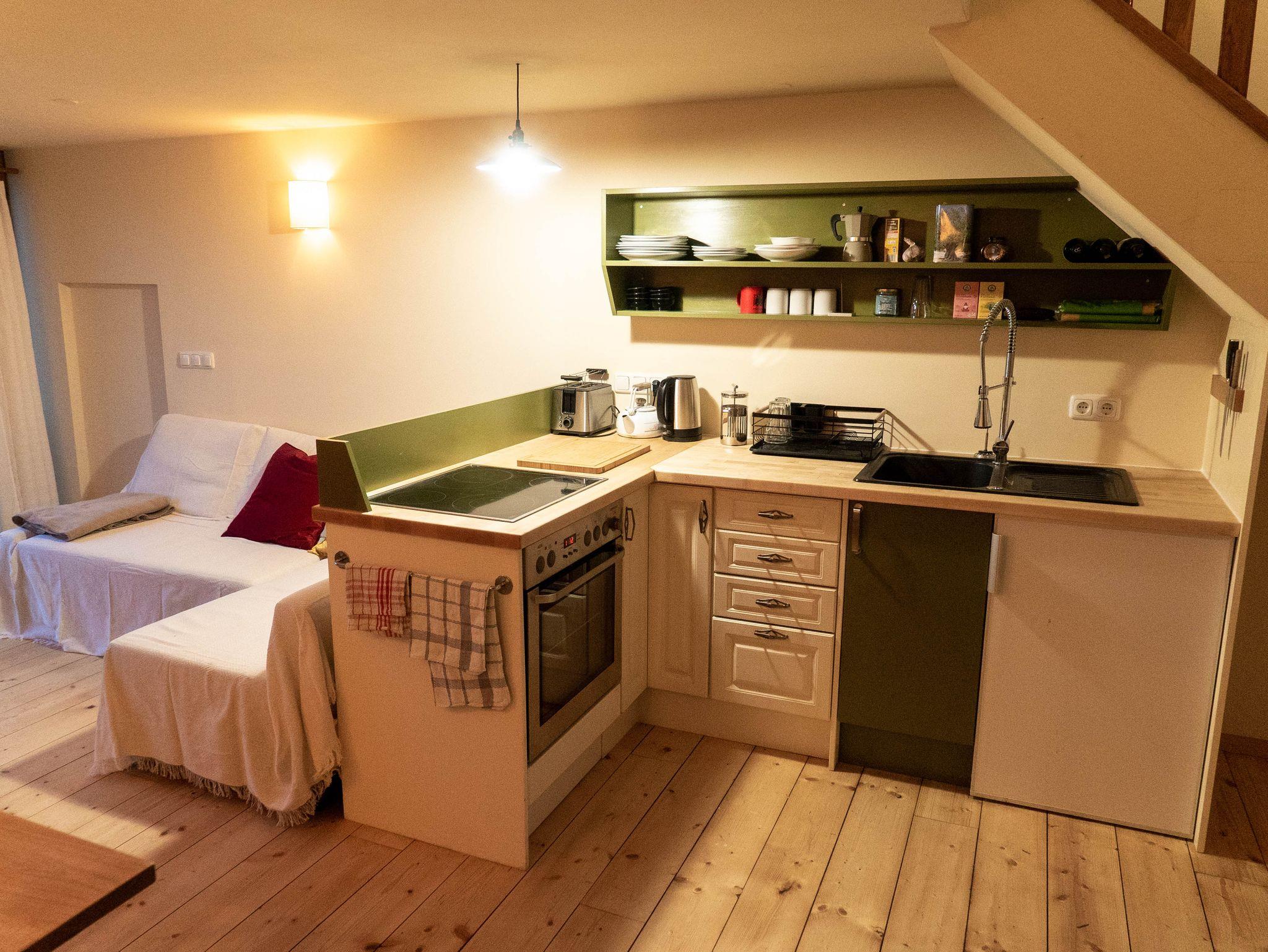 Die Ferienwohnung befindet sich im OG des ehemaligen Wirtschaftsgebäudes am Schmiedhof.