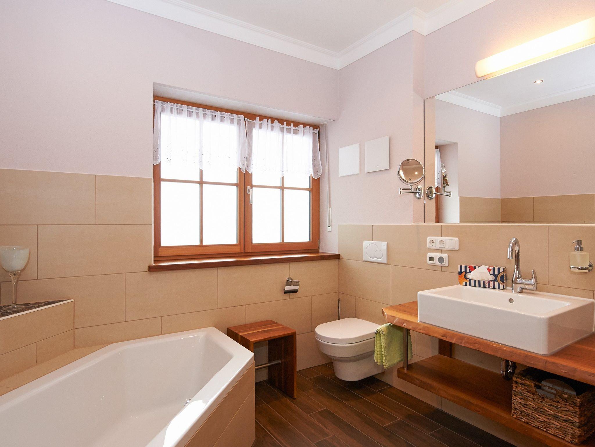 Unsere großzügig geschnittene Erdgeschoss-Ferienwohnung bietet Ihnen neben einem liebevoll und modern eingerichteten sowie komplett ausgestatteten Wohn- und Essbereich zwei große Bäder, sowie eine offene Terrasse. Die Küche verfügt über einen Kaffeevollautomat und ist umfangreich ausgestattet für gemeinsames Kochen. Ihnen stehen zwei Schlafzimmer zur Verfügung, von denen eines ein Doppelzimmer und das andere ein Dreibettzimmer mit Fernseher ist. Beide Bäder verfügen über Fußbodenheizung sowie eine große Dusche mit Regenbrause. Eines der beiden Bäder ist komplett rollstuhlgerecht gestaltet. Das heißt, Sie erwartet neben einem unterfahrbaren modernen Waschtisch eine große begeh- bzw. befahrbare Dusche. Ein gemauerter Kamin im Wohnbereich sorgt an kühlen Abenden für gemütliche Stunden und macht Ihren Urlaub zu einem wunderschönen Erlebnis. An allen Fenstern und Türen befindet sich ein Insektenschutz sowie Rollläden zur Verdunkelung. So können Sie Ihren Aufenthalt auf unserem Ferienhof ungestört genießen.