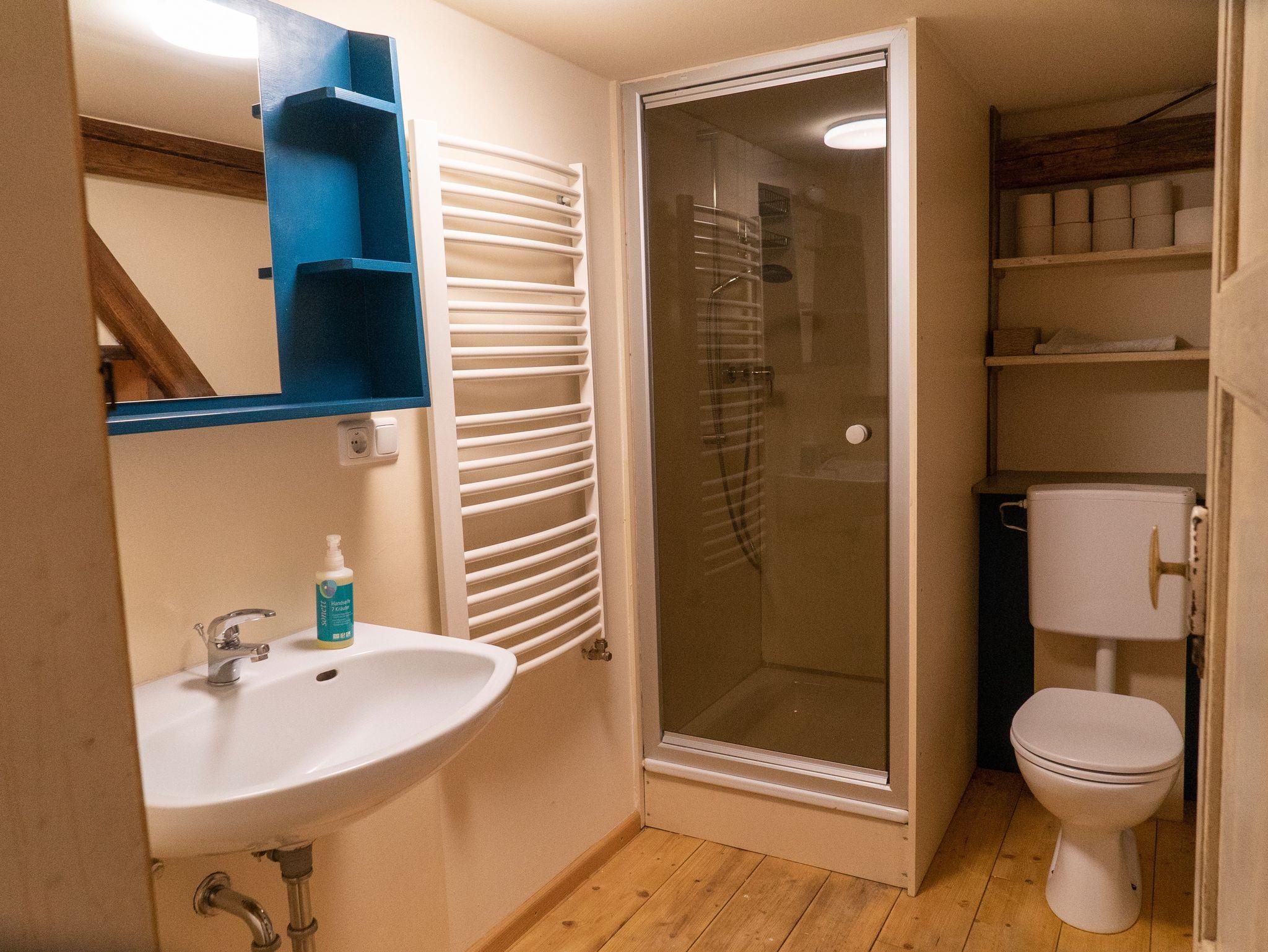 Die Ferienwohnung befindet sich im OG des ehemaligen Wirtschaftsgebäudes am Schmiedhof.