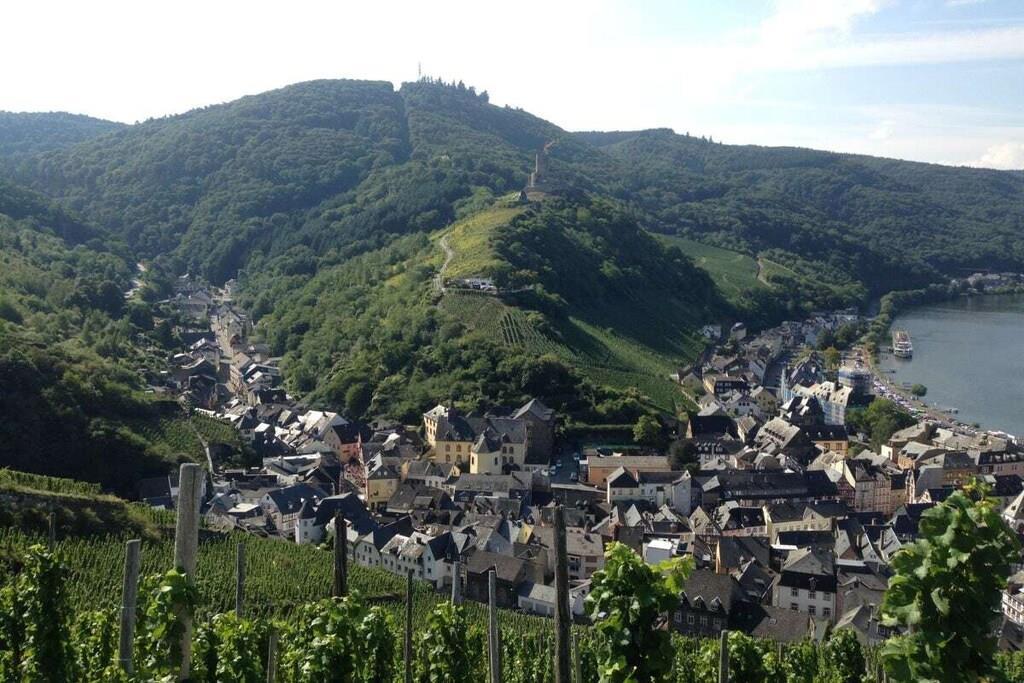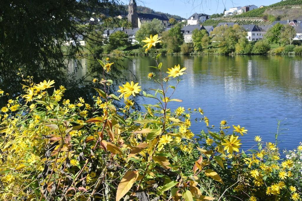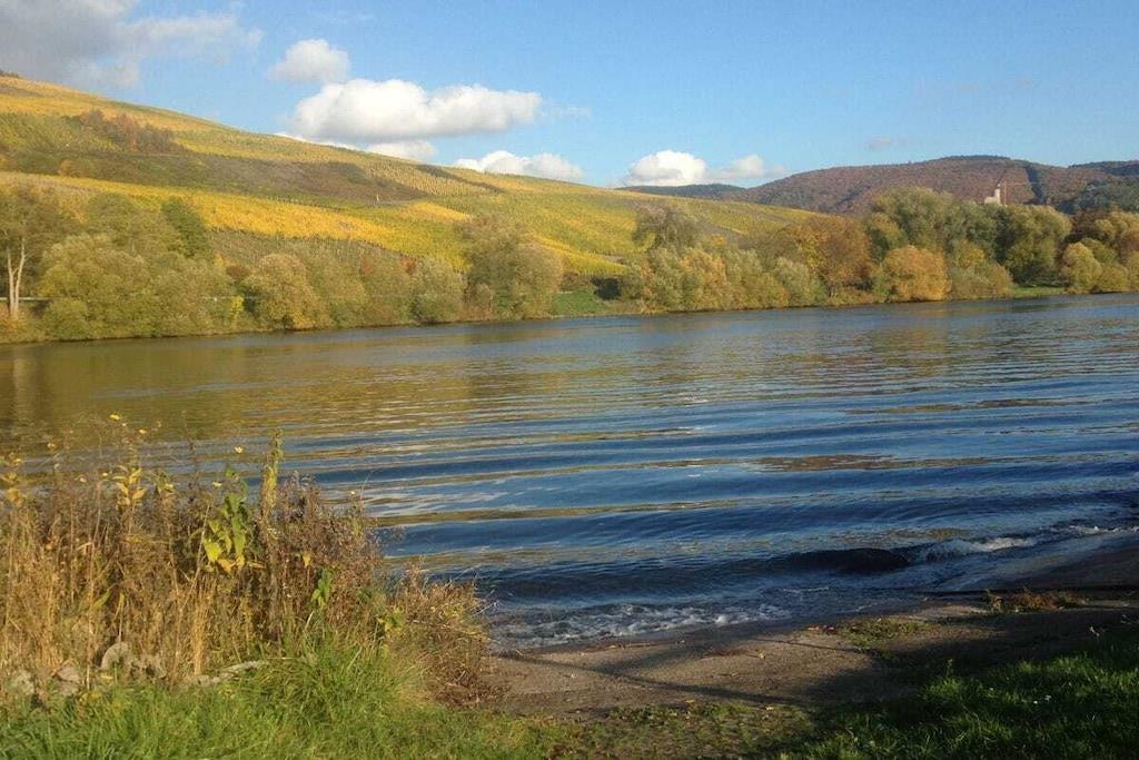 Dieses hochwasserfreie Holzhaus liegt idyllisch in einem Garten zur Alleinbenutzung, umrandet mit Hecke, an Moselwiesen + Moselradweg . Unverbaute Wiesen unter dem Häuschen, mit großen Bäumen bepflänzt. Man kann direkt über die Wiesen mit wenigen Schritten zum Moselufer gelangen. Ländliche Umgebung mit Gärten + Weinbergen, für Naturliebhaber, Wanderer, Radfahrer, Angler. Beim Frühstück direkter Blick auf Wiese, eig. Parkplatz. Komplette kleine Küche mit 2 Elektrokochpl., Kühlschrank mit Gefrierfach , Kaffeemaschine , reichlich Geschirr. Smart-TV , W-Lan. Garten mit komfortablen Liegen, Stühle + Gartentisch.