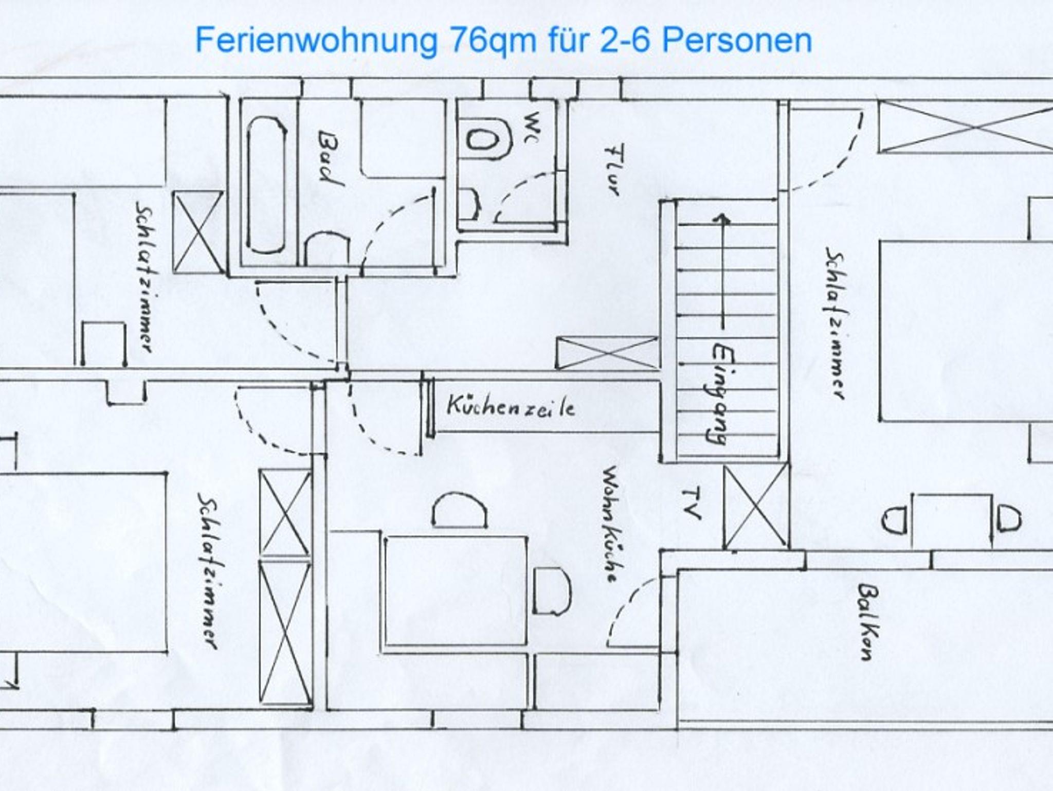 Die 76qm Nichtraucher Ferienwohnung mit separatem Eingang verfügt über 1 Schlafzimmer mit Doppelbett (180x200), 1 Schlafzimmer mit Doppelbett (180x190), 1 Schlafzimmer getrennte Betten (90x190, 90x200) ein zusätzliches Kinderbett wäre möglich. Im Wohnraum (neu renoviert in 2022) befindet sich eine große Essecke und ein Sofa, sowie eine gut ausgestattete Küchenzeile (Kühlschrank, Spülmaschine, Mikrowelle, E-Herd mit Ceranfeld und Backofen, Kaffeemaschine). Die Erstausstattung der Bettwäsche, Hand- und Badetücher und sämtliche Nebenkosten sowie eine Garage sind inclusive. Der breite Balkon bietet Tisch und Sitzgelegenheiten und die Terrasse ist mit Gartenmöbeln bestuhlt. Für die Liegewiese stehen Liegen zur Verfügung, eine Grillmöglichkeit besteht und für die kleinen Gäste stehen Schaukeln bereit. Wir bieten einen Brötchenservice und einen Einkaufsservice vor Anreise.