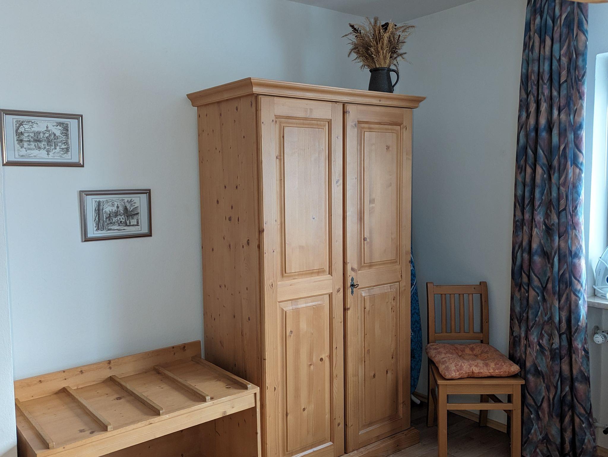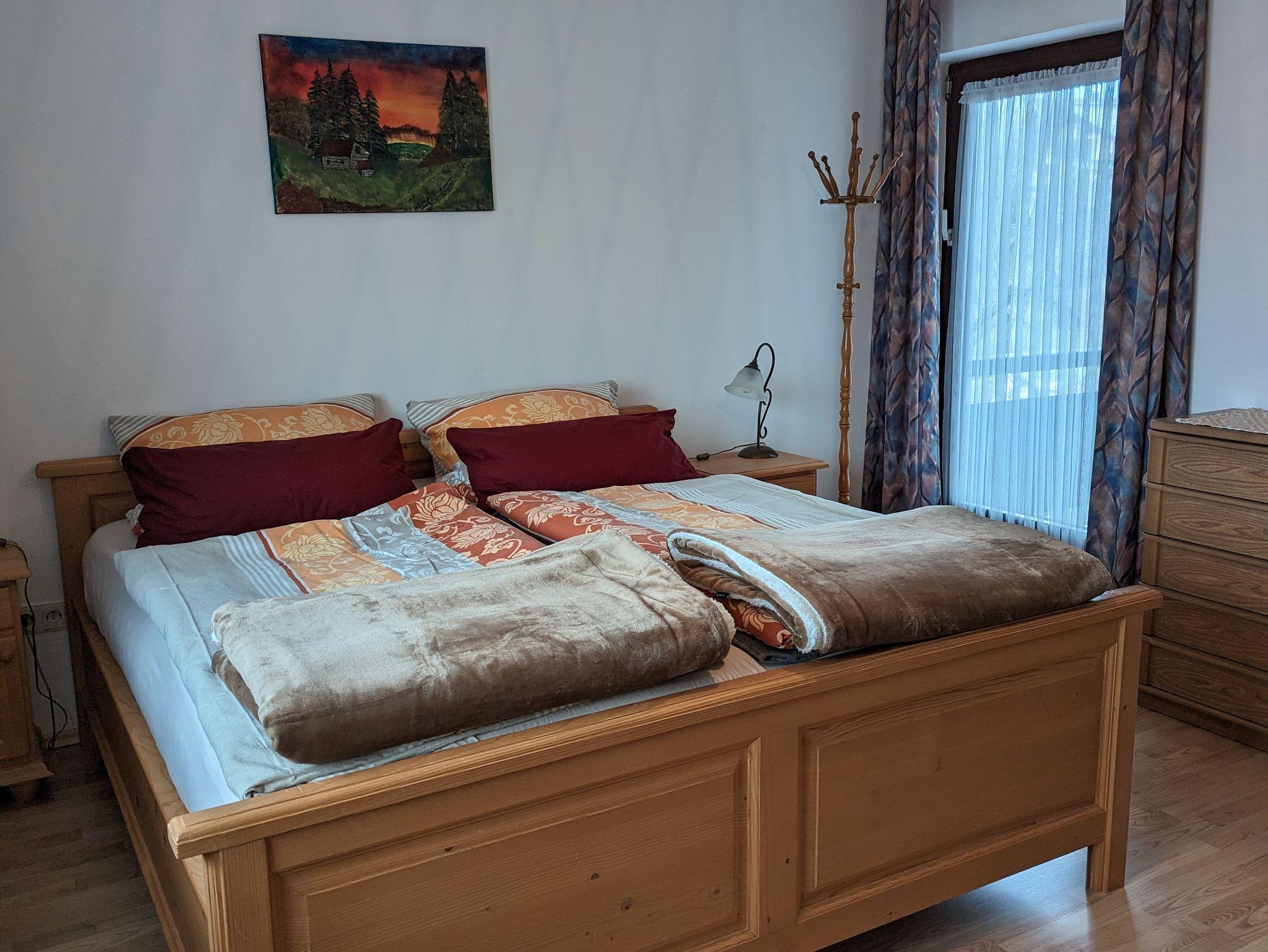 Neu renovierte Nichtraucher-Ferienwohnung im ersten Stock mit großem Balkon, Autostellplatz, abschließbarem Fahrradunterstand, Tresor, Schwedenofen (2 Körbe Holz inklusive, jeder weitere gegen kleine Gebühr) und Zentralheizung. Bügeleisen und Bügelbrett stehen zur Verfügung. Im Schlafzimmer mit Boxspringmatratzen besteht absolute Verdunkelungsmöglichkeit. Kostenfreies WLAN, Sat-TV, DVD mit Blu-Ray. Hunde sind erlaubt. Vom Balkon haben Sie einen herrlichen Berg- und Landschaftsausblick. Zusätzlich zu der klassifizierten Wohnung steht ein weiterer Schlafraum für bis zu 2 Personen zur Verfügung. Preis und Buchung auf Anfrage.