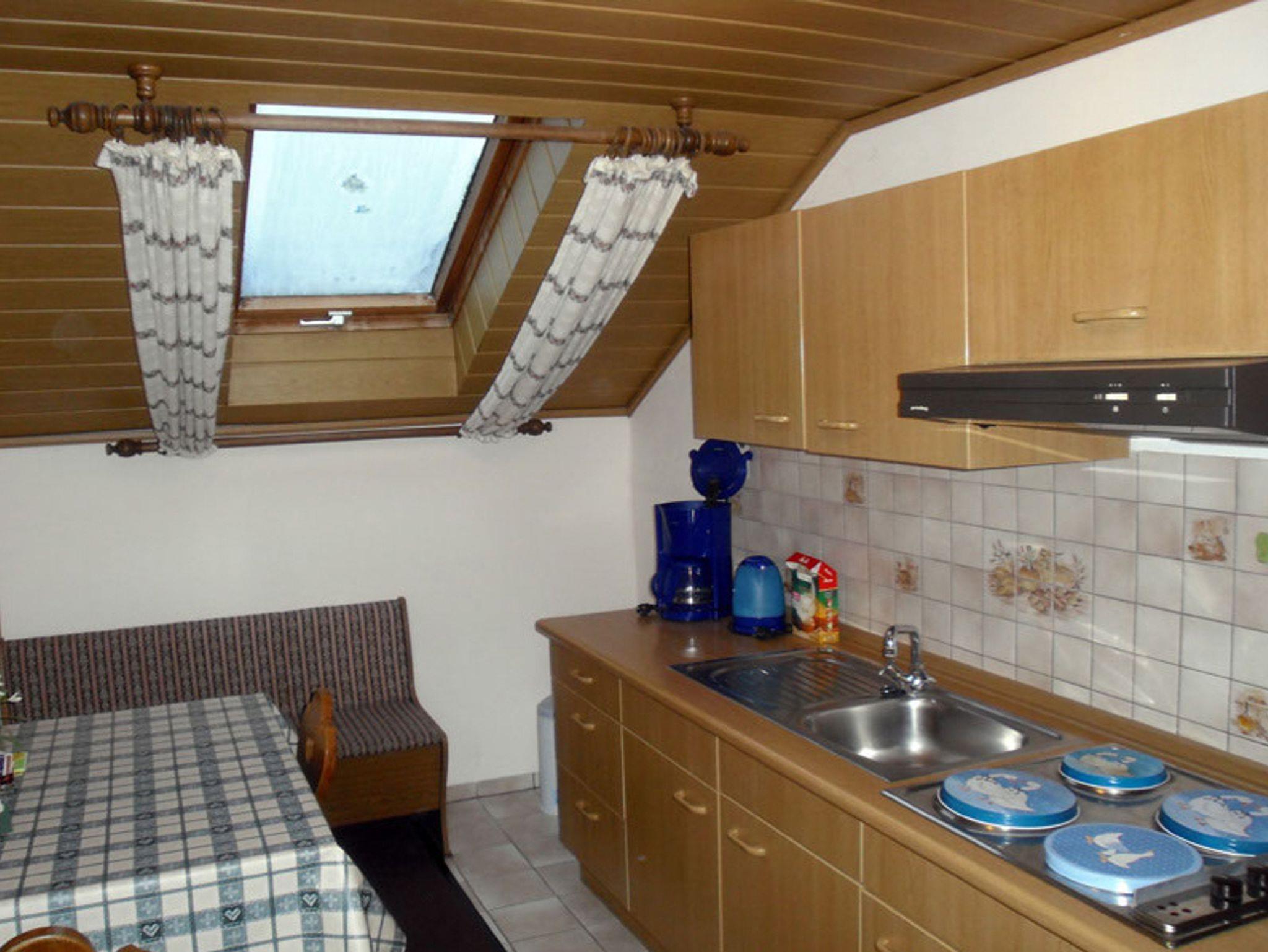 Gemütliche Ferienwohnung im Dachgeschoss verfügt über ein separates Schlafzimmer mit Doppelbett sowie ein Wohn-/Schlafzimmer mit einem ausziehbaren Schlafcouch. Die separate Küche ist voll ausgestattet und bietet direkten Zugang zum Balkon. Balkonmöbel ermöglichen einen gemütlichen Aufenthalt und herrlichen Blick auf die Berge. Im hauseigenen Garten gibt es eine Grillmöglichkeit sowie Gartenmöbel. Frühstück und Getränke- oder Brötchenservice kann gegen Aufpreis zu der Ferienwohnung dazugebucht werden. Die Ferienwohnung eignet sich für maximal 3 Personen.
