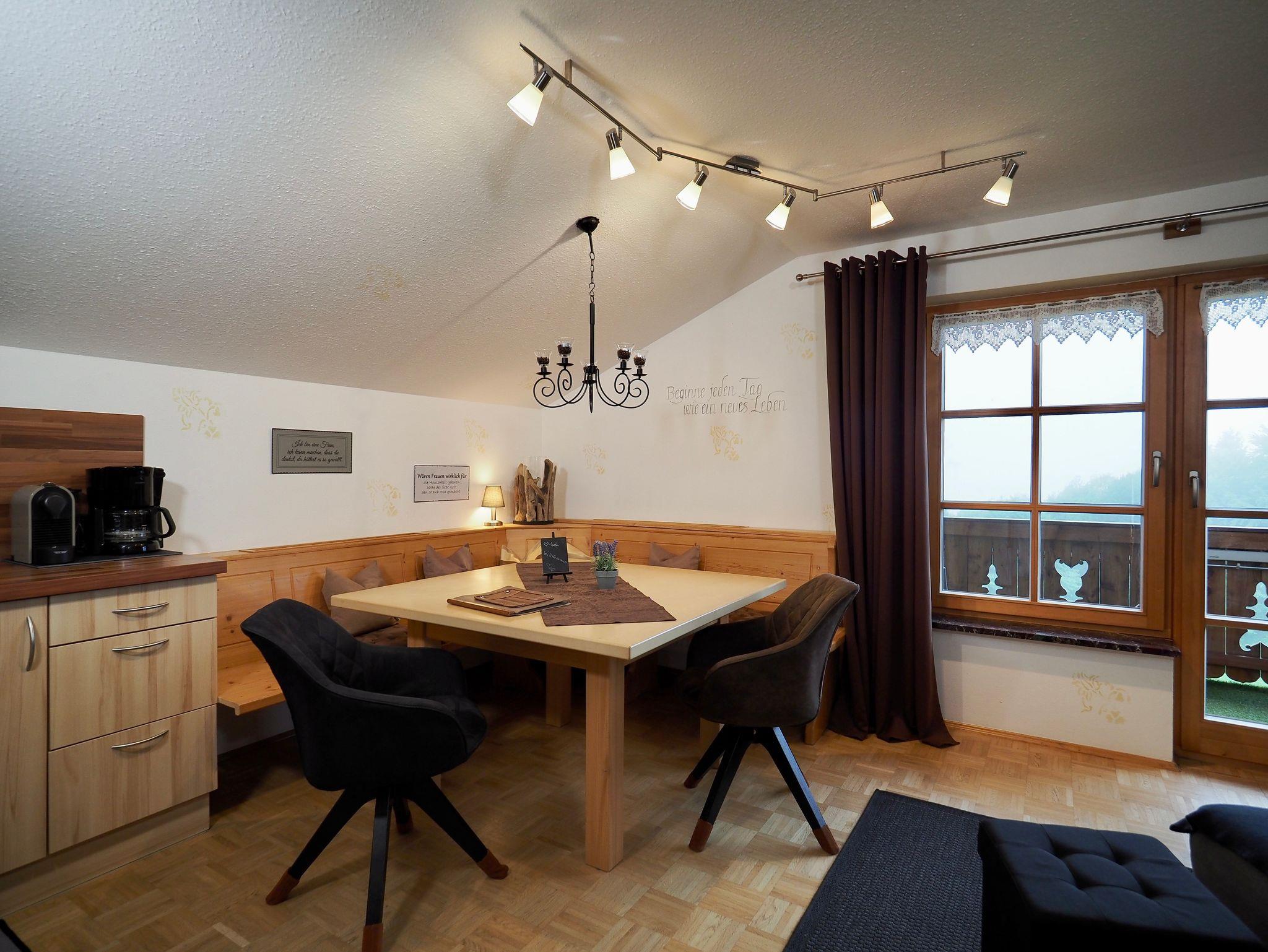 Neu renoviert in 2022: Die gemütlich und liebevoll eingerichtete Ferienwohnung Staufenblick bietet ihrem Namen entsprechend im 2. Stock unseres Hauses ein grandioses Alpenpanorama vom Balkon. Eine Wohnküche mit moderner Kücheneinrichtung (Geschirrspüler, Herd mit Ceranfläche und Backrohr, Mikrowelle, Kaffeeautomat, Kühl-Gefrierkombination, Nespresso-Kaffeemaschine), Eckbank, Sitzecke, TV und Radio steht für Sie bereit. Ebenso ein Schlafzimmer mit Doppelbett und ein modernes Duschbad. Vom Balkon genießen Sie eine traumhafte Aussicht.