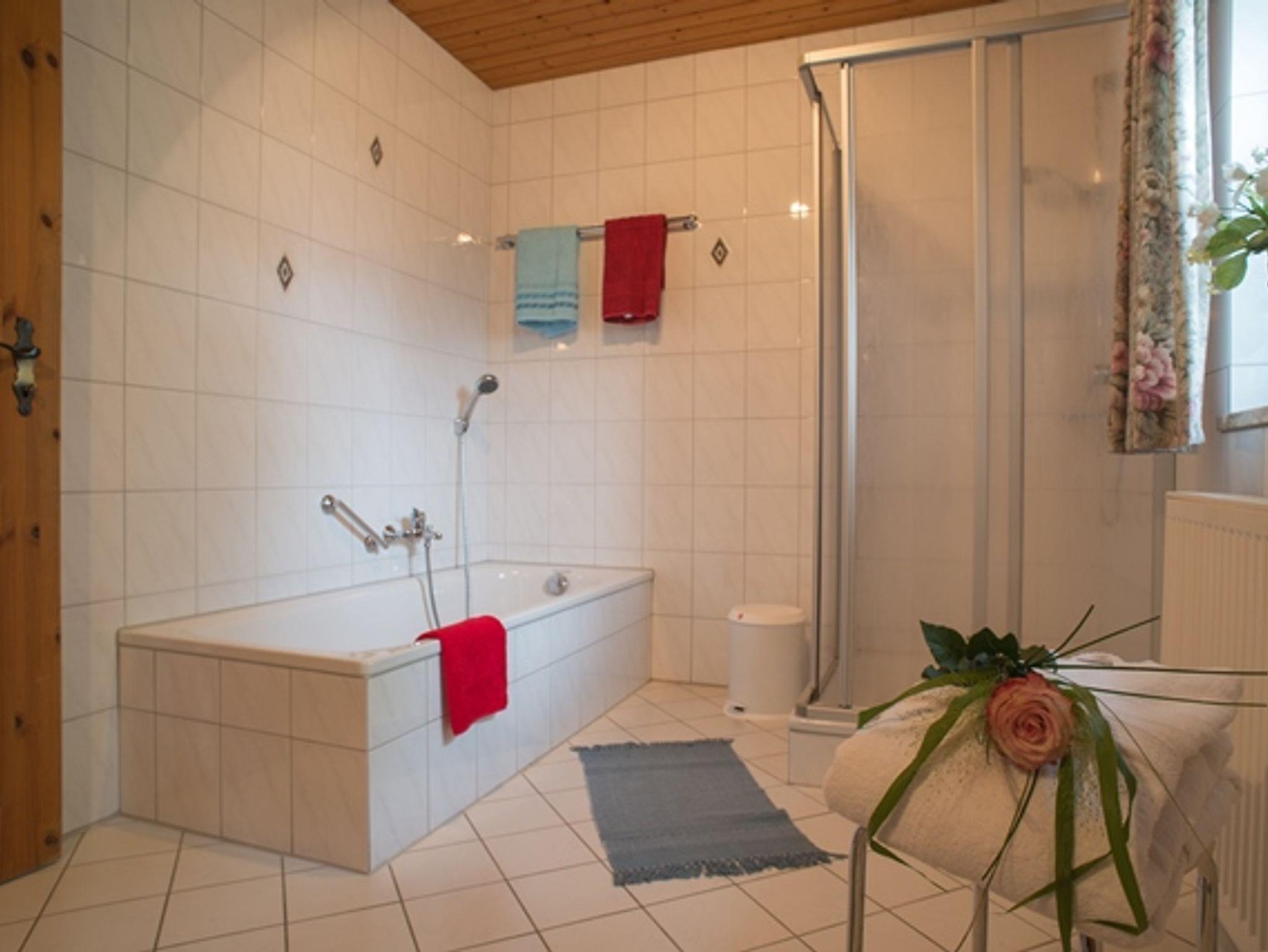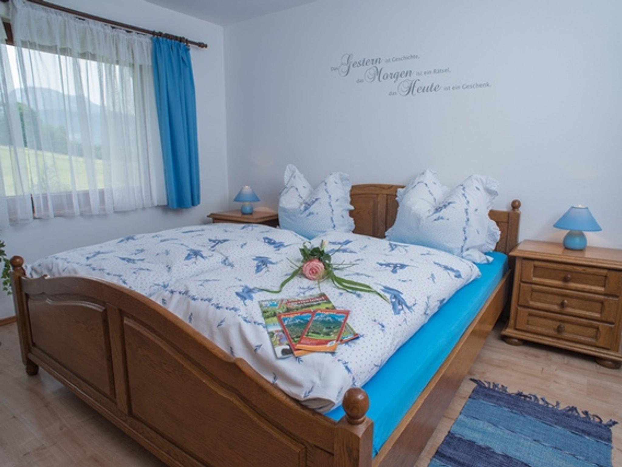 Die komfortable, sonnige 4-Sterne Ferienwohnung verfügt über zwei separate Schlafzimmer mit jeweils einem Doppelbett, großer Wohnküche, Bad und WC sowie über einen Balkon mit herrlichem Bergblick. Die Liegewiese steht zur gemeinsamen Nutzung zur Verfügung sowie Gartenmöbel und eine Grillmöglichkeit. Die Wäsche (Erstausstattung) wird gestellt. Auf Wunsch kann ein Babyhochstuhl und -bettchen gestellt werden sowie Waschmaschinen- und Trocknerbenutzung angeboten werden. In dieser Wohnung können leider keine Haustiere aufgenommen werden.