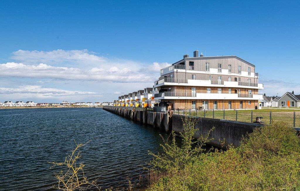Der offene Wohn-/Essbereich mit integrierter, hochwertig ausgestatteter Küche gestaltet sich aufgrund der bodentiefen Fensterfront lichtdurchflutet und bietet einen einzigartigen Blick aufs Wasser. Egal ob bei Sonnenschein auf der Terrasse oder bei Schietwetter in der EsseckePlatz ist für die ganze Familie für gemeinsame Zeit vorhanden.