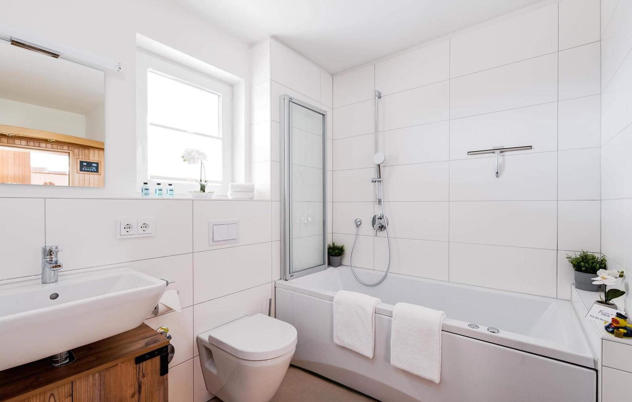 - WC mit warmem und kaltem Wasser, Dusche und Badewanne