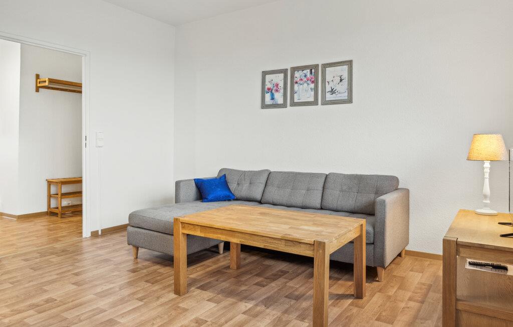 Willkommen in der ansprechenden Wohnung, die Sie in bester Lage für einen vielseitigen Urlaub empfängt. Dezente Farben verleihen den Räumen ihren ansprechenden Ausdruck. Freuen Sie sich auf gemeinsame Mahlzeiten mit schöner Aussicht und entspannen Sie nach Ihren Unternehmungen auf dem behaglichen Sofa.
