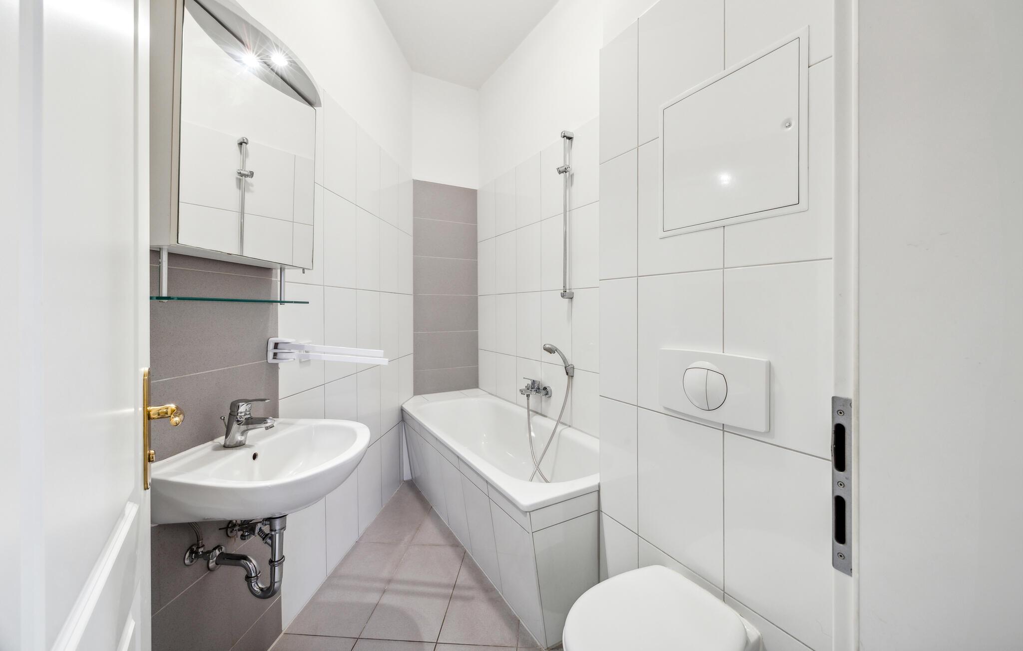 Badezimmer 8m2 (nr. 1) - WC. Warmes und kaltes Wasser. Handdusche und Badewanne