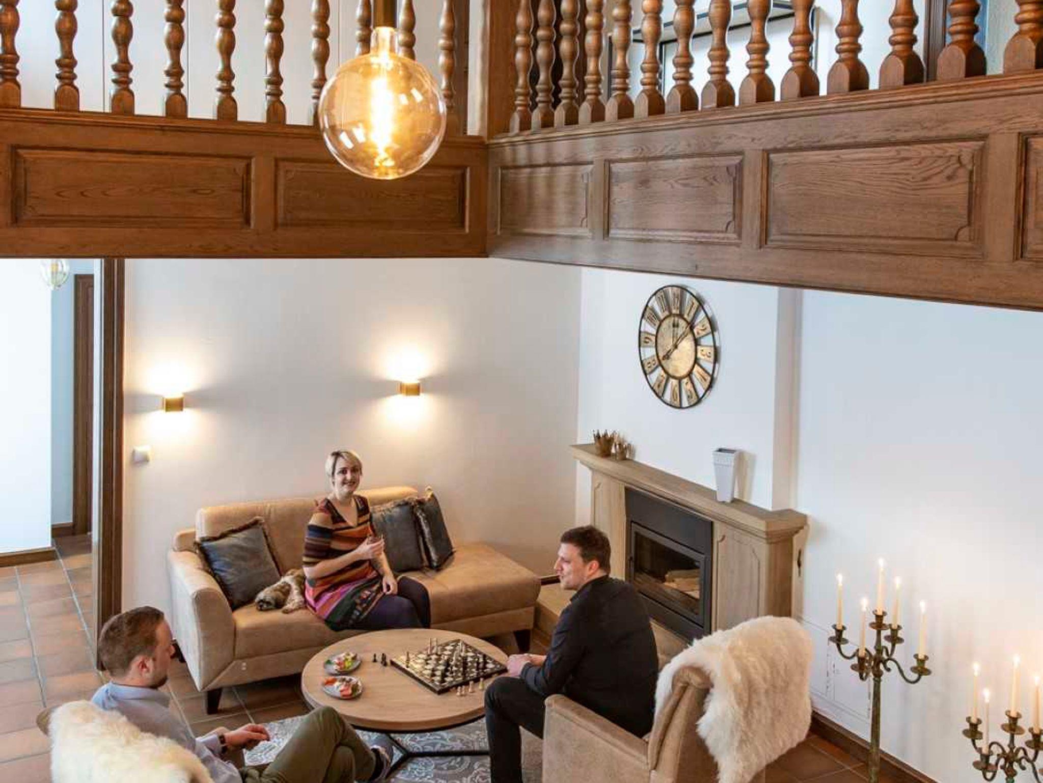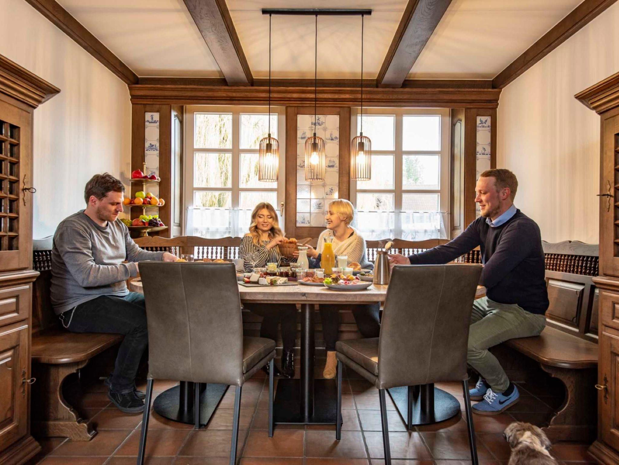 Ein besonderes Highlight für unsere Besucher ist das umgebaute Herrenhaus, in dem Gruppen von bis zu 14 Personen übernachten können. Das Haus erstrahlt nach der Renovierungsphase nun in neuem Glanz. Schon beim Eintreten durch das herrschaftliche Portal fühlt man sich wie zu Hause. Eine gemütliche Sitzgruppe vor dem Kamin lädt direkt zur Entspannung und einem Plausch.
