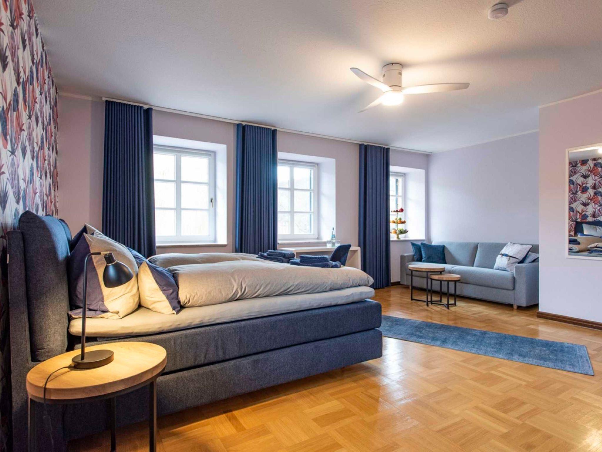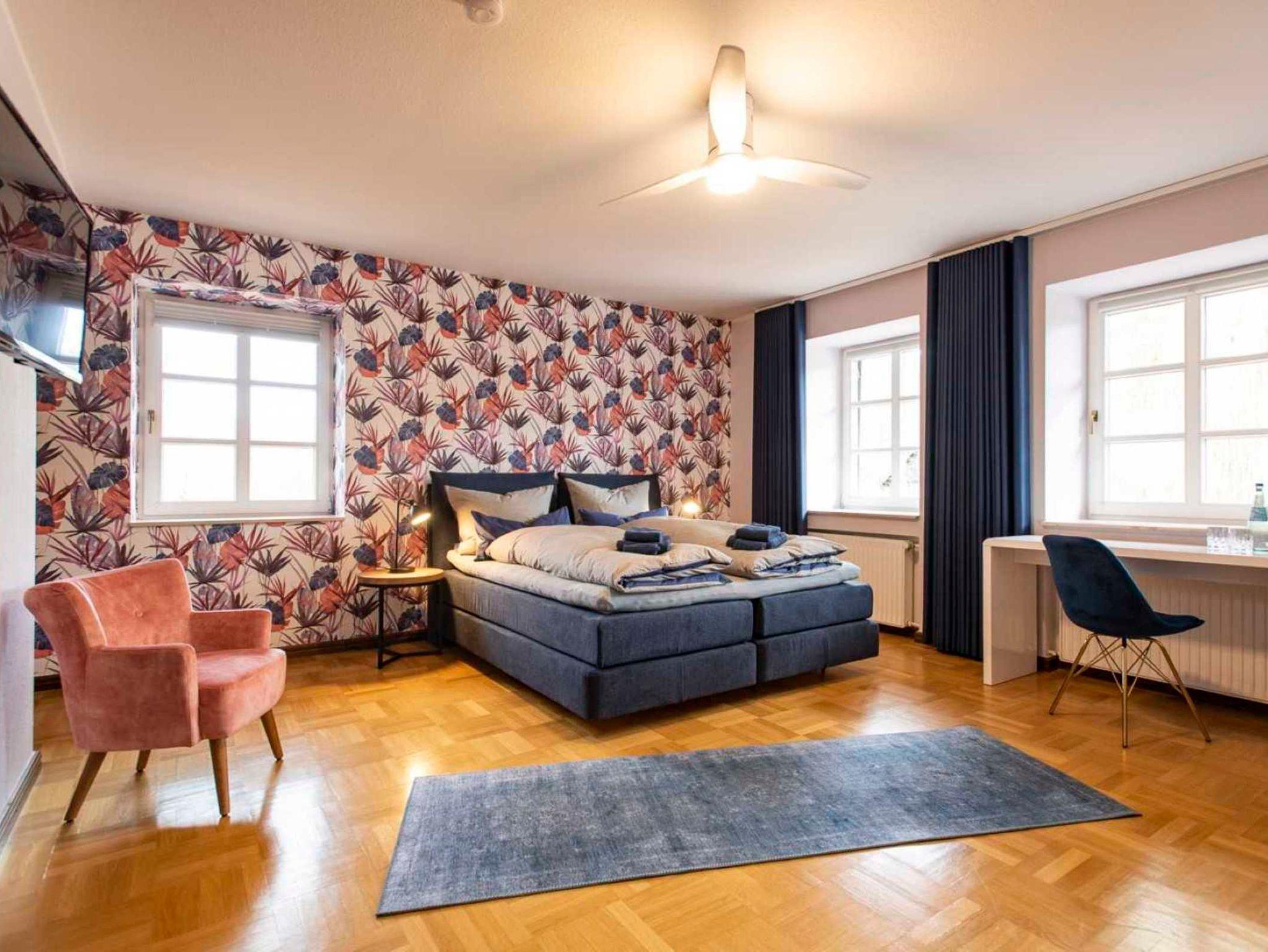 Im ersten Stockwerk des Hauses befinden sich vier individuell eingerichtete Gästezimmer. Zwei davon haben ein direkt angrenzendes Badezimmer. Unser „Traumschloss“ verfügt über ein großes Bad mit Dusche. Im „Liebesnest“ steht den Gästen neben der Dusche ein freistehender Whirlpool zur Verfügung.