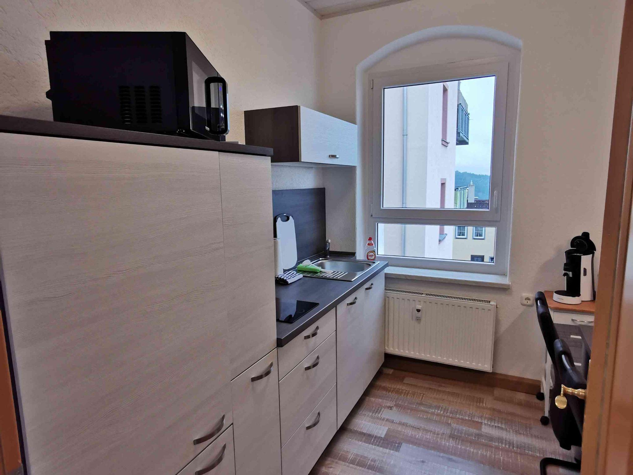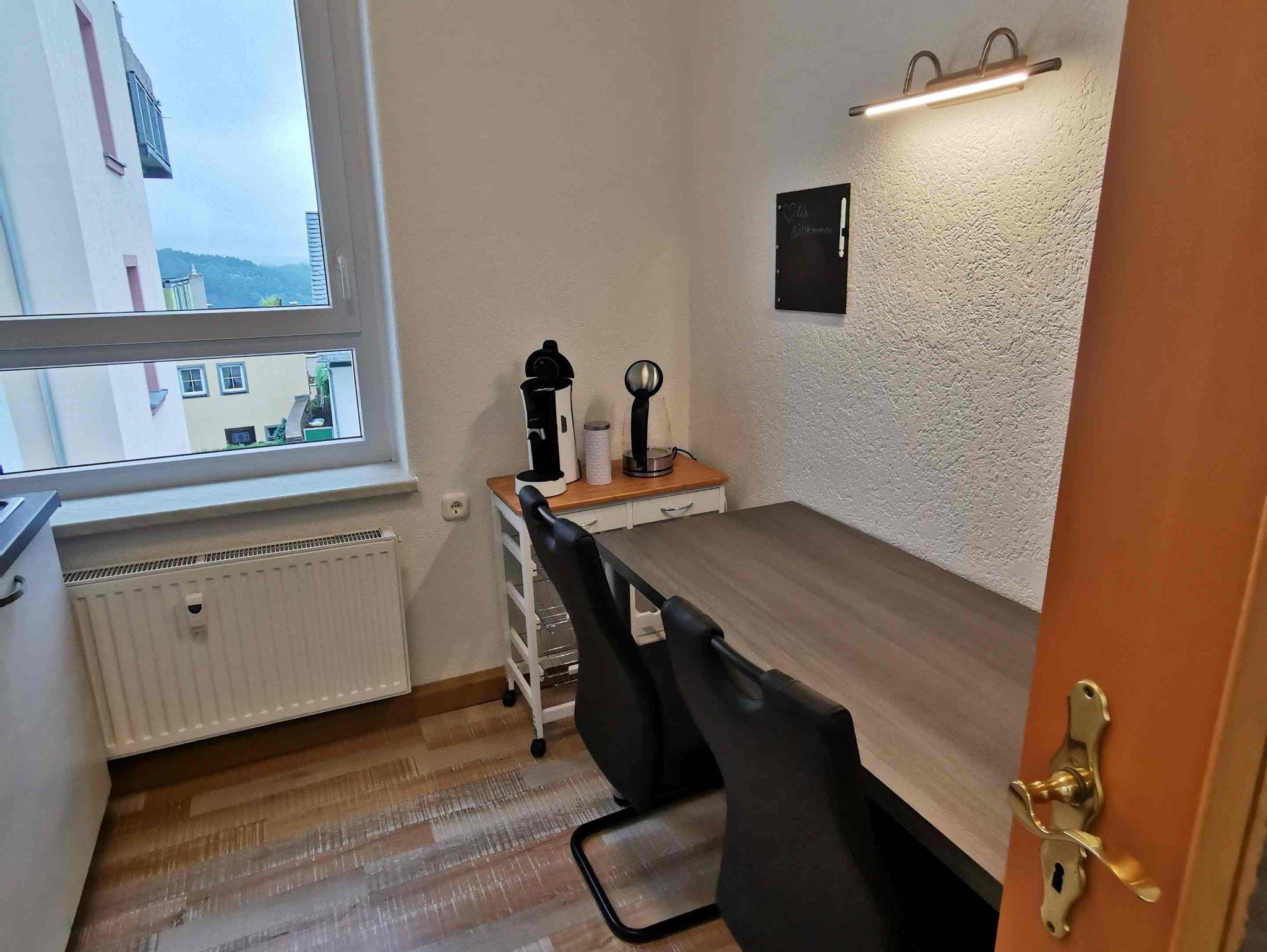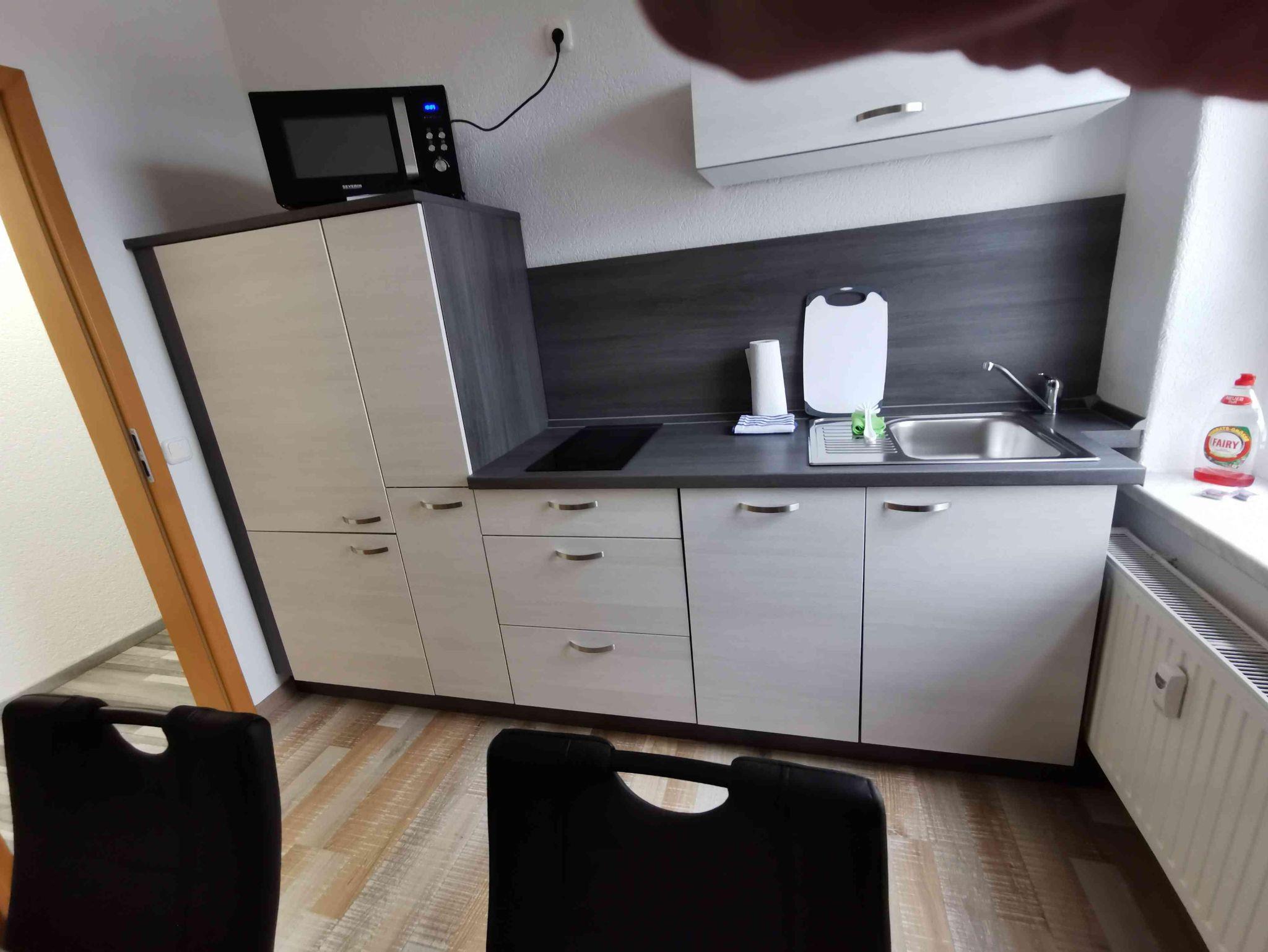 In der Ferienwohnung finden Sie eine gute Ausstattung, z.B. Induktionsherd(2 Platten), Wasserkocher, Kaffeemaschine, 60 Zoll Flachbildfernseher etc.