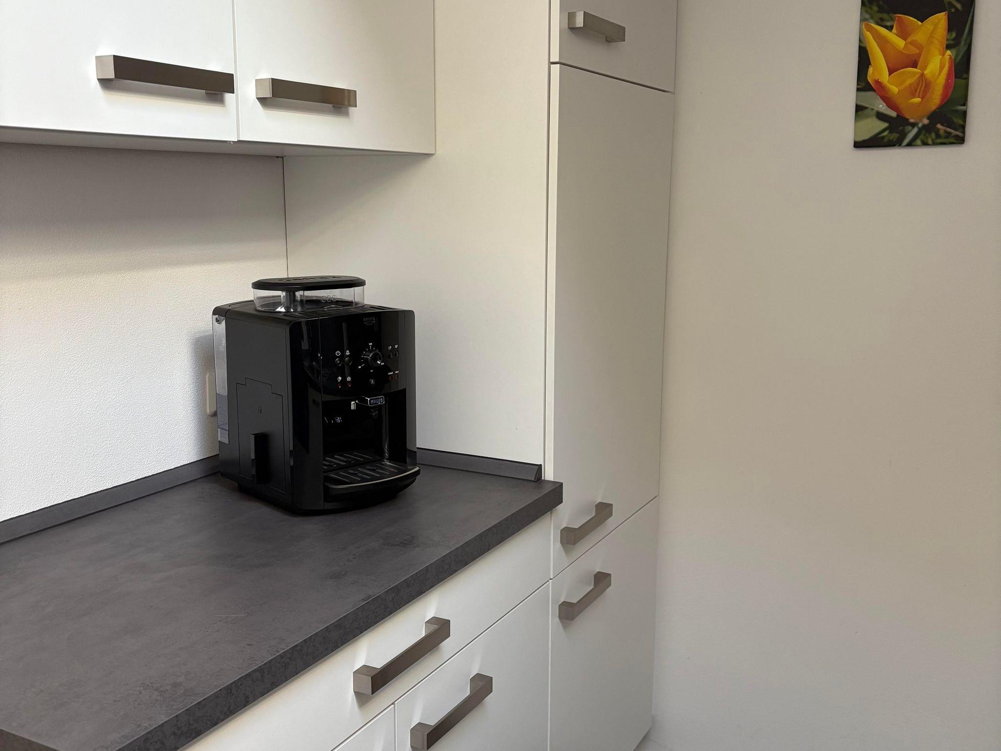In unserer gut ausgestatteten Küche befinden sich neben einem Kühlschrank mit Gefrierfach, einem Cerankochfeld-Herd mit integriertem Backofen, auch eine Spülmaschine, Mikrowelle und eine hochwertige Pads Kaffeemaschine. Ebenso eine Filterkaffeemaschine mit integriertem Mahlwerk, Allesschneider, Toaster, Wasserkocher, Eierkocher, Stabmixer und alle weiteren Gerätschaften und Küchenutensilien des täglichen Bedarfs.