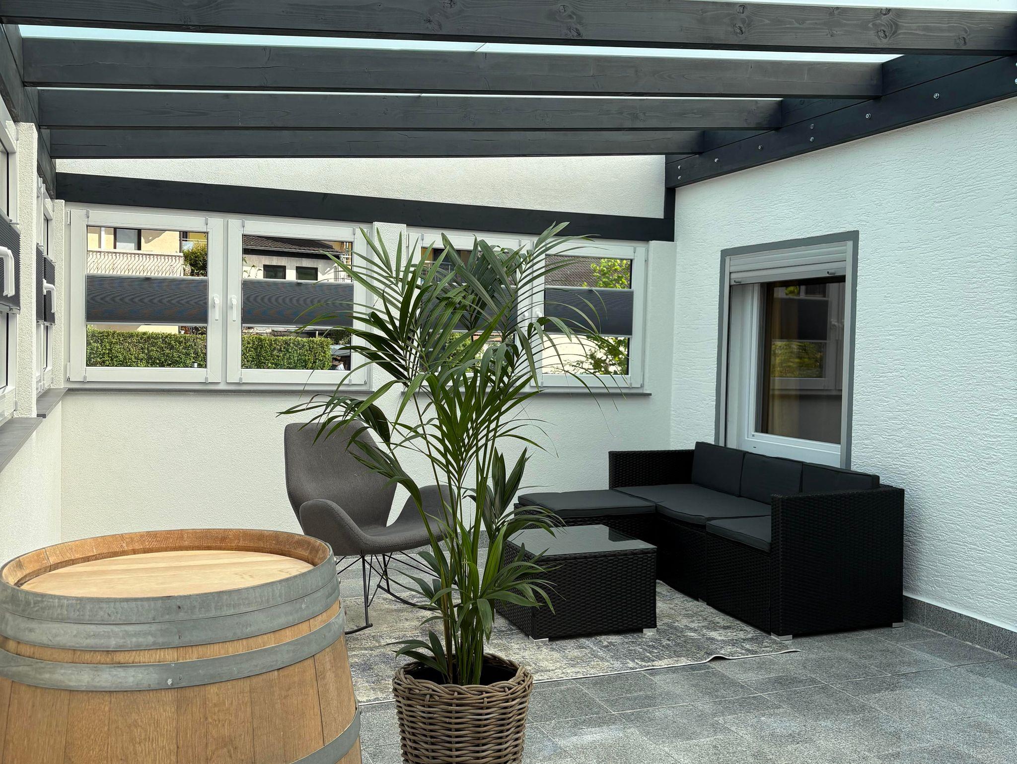 Die teilüberdachte Terrasse mit den Gartenmöbeln steht Ihnen zur alleinigen Nutzung zur Verfügung Der Blick auf den Kastanienwald lädt geradezu ein am Abend ein Glas Wein zu genießen oder am Morgen ein reichhaltiges Frühstück einzunehmen.