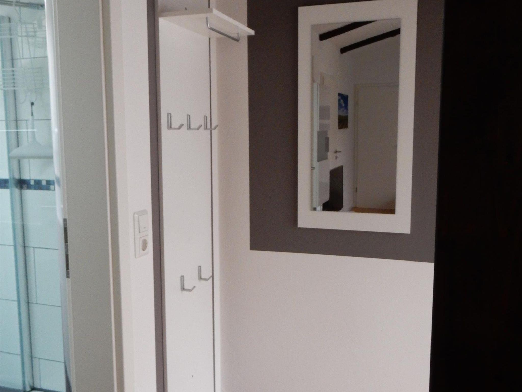 Im geräumigen Schlafzimmer befindet sich ein Doppelbett (1,60m x 2,00m), ein geräumiger Kleiderschrank sowie ein Ganzkörperspiegel. Hier kann von uns gerne ein Kinderbett aufgebaut werden, sollten Sie ein Kleinkind mitbringen wollen.