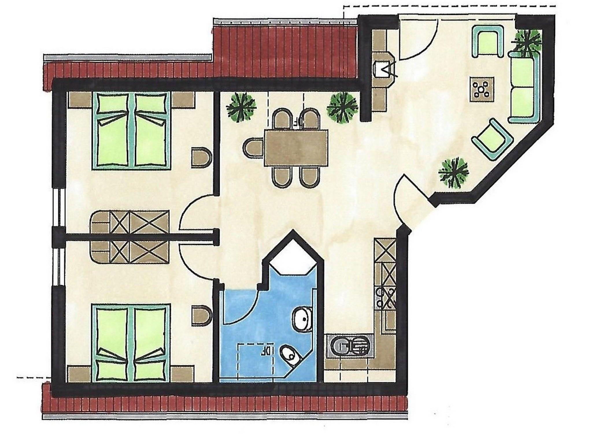 Die komfortable Ferienwohnung Riesling wurde 2001 neu errichtet ist 70 qm groß und bietet Platz für 4 Personen. Sie befindet sich im Dachgeschoß.
