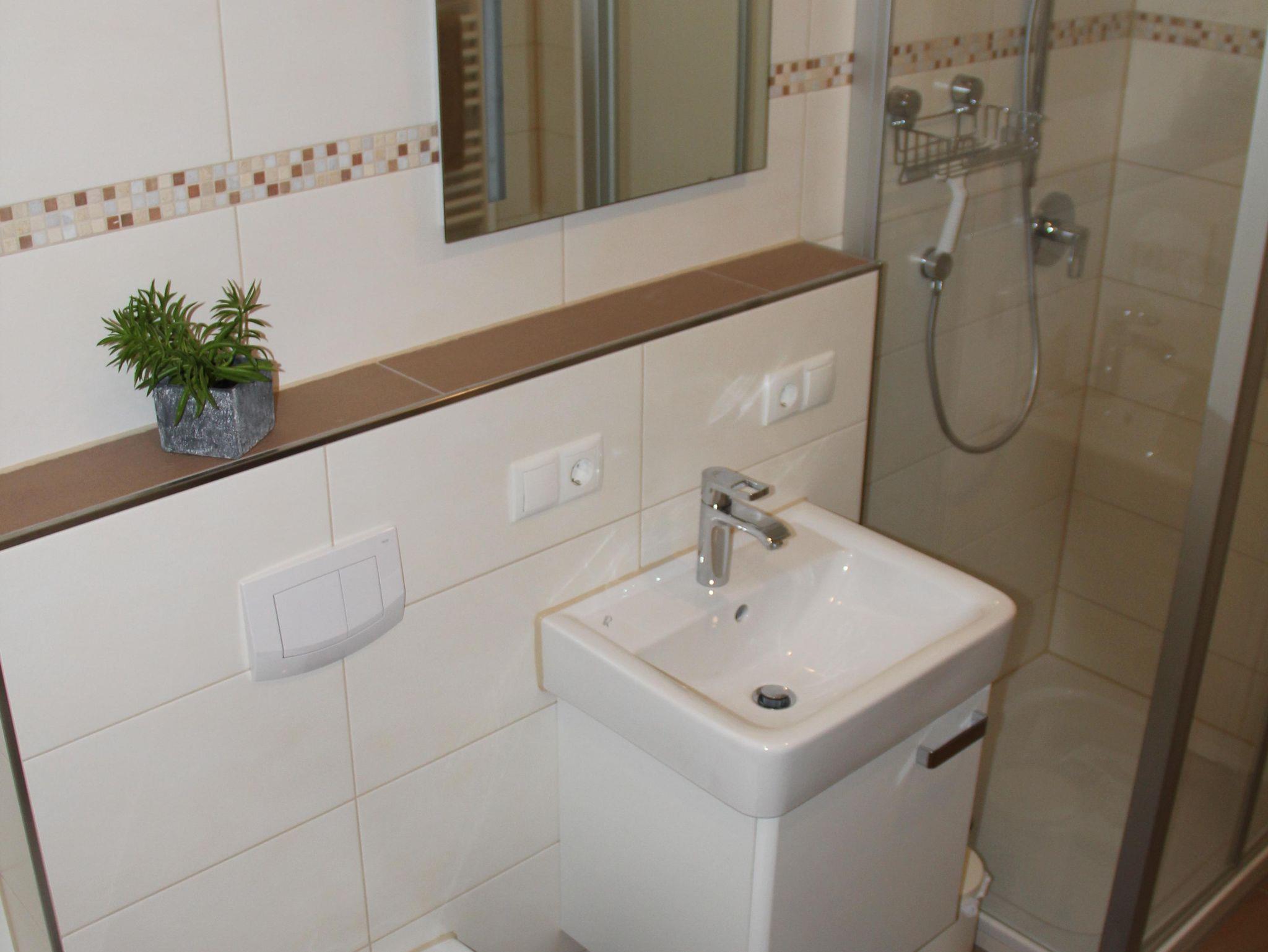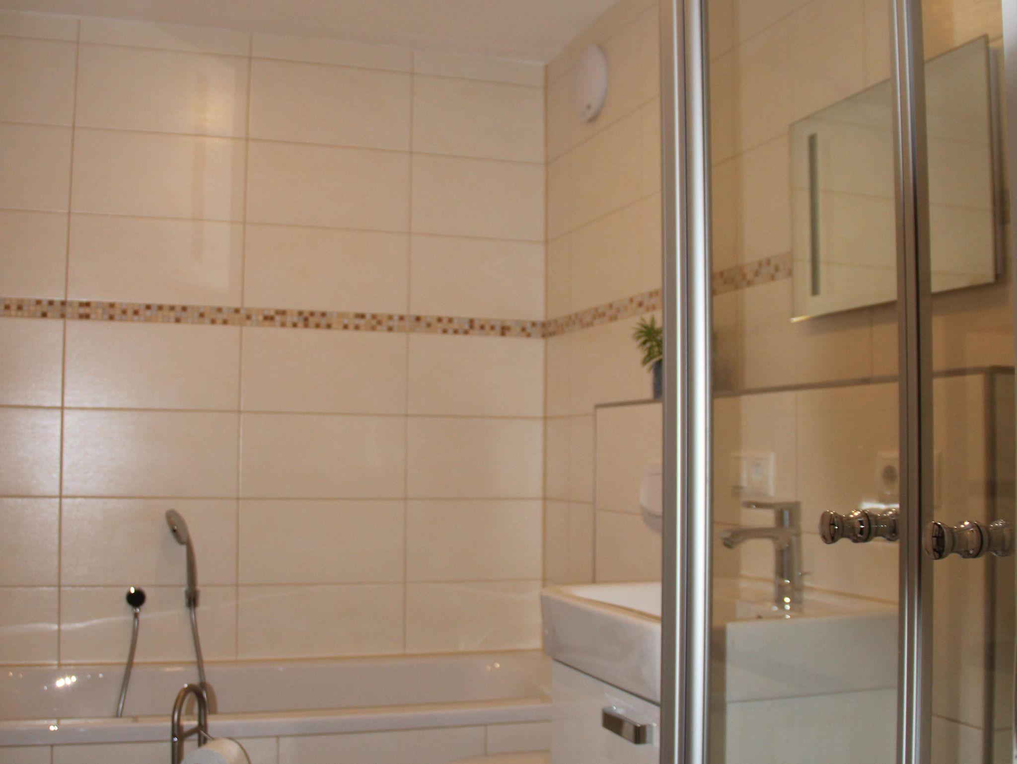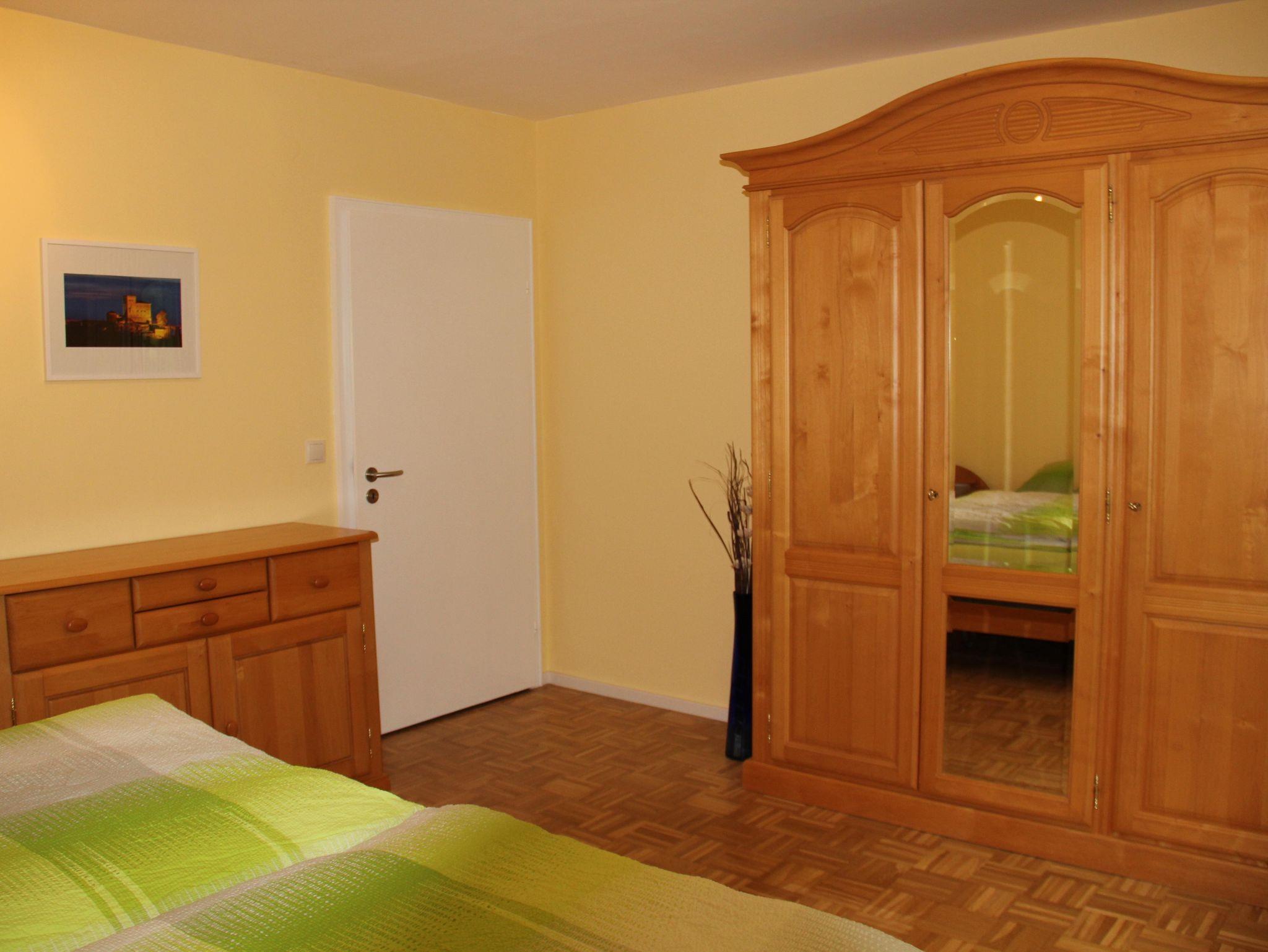 Unsere komfortable Ferienwohnung verfügt über eine komplett eingerichtete Küche (Filter + Pad Kaffemaschine), ein großes Schlafzimmer, ein modernes Badezimmer mit Badewanne, separater Dusche und Fußbodenheizung. Im Wohn-/Esszimmer befinden sich ein Full-HD-Fernseher inkl. Sat-Anschluss, eine Kompaktanlage (Radio, CD) sowie ein Telefon. Neu seit 2018 eine Schlafouch mit einer Liegefläche von ca. 1,40x2,10m. In der gesamten Wohnung haben Sie kostenfreien Zugang zum W-LAN. Auf Anfrage stellen wir gerne kostenlos Babybett und Hochstuhl bereit. Kinder bis 12 Jahre übernachten kostenfrei.