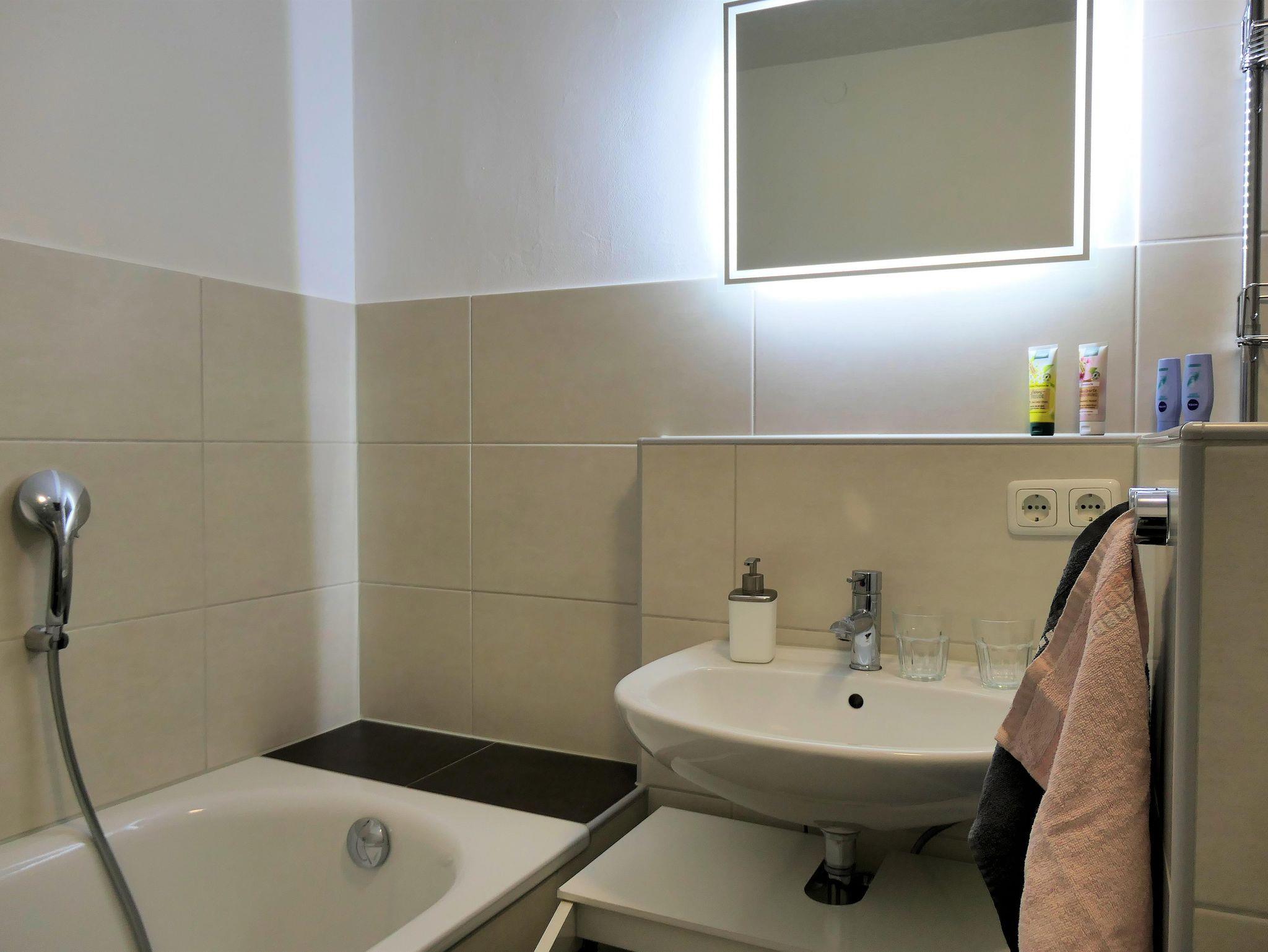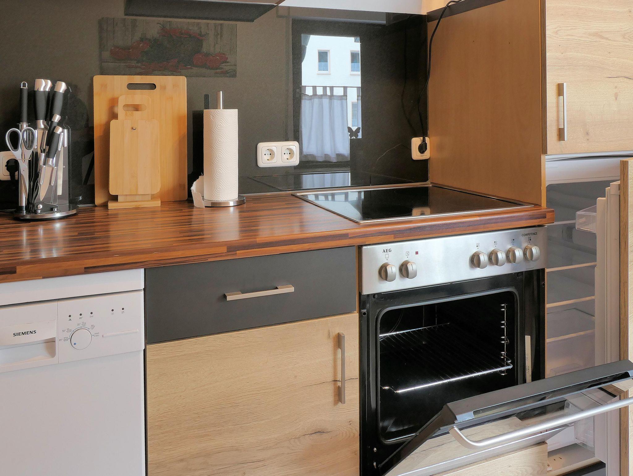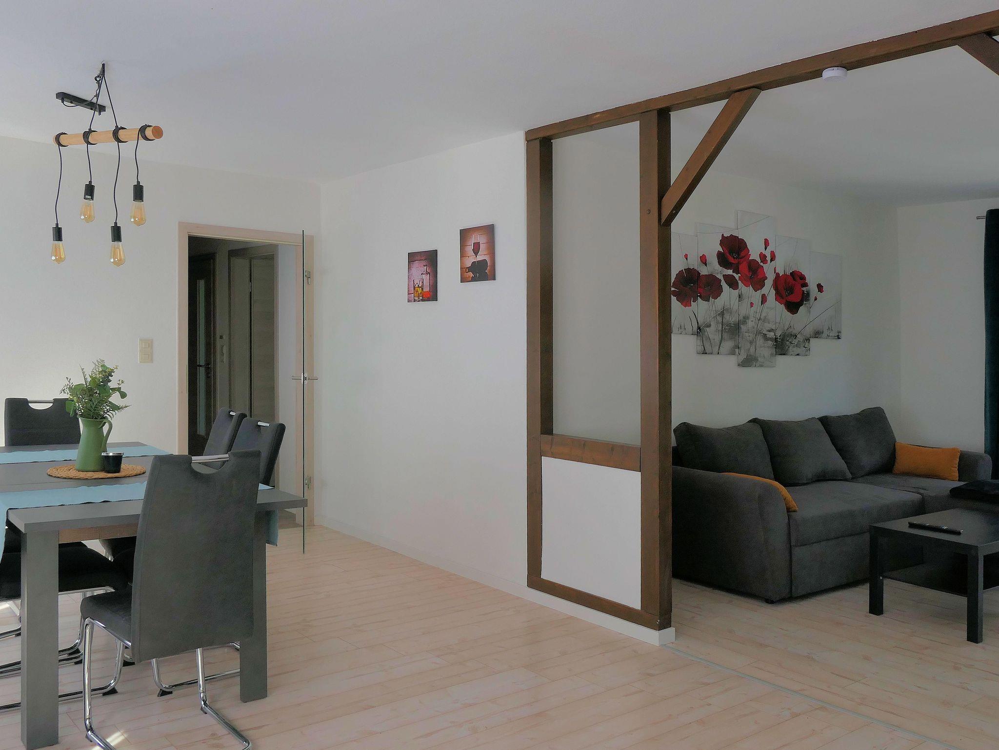 Die Wohnräume befinden sich im Obergeschoss auf ca. 100 qm. Aufgeteilt in ein Schlafzimmer mit Doppelbett, ein Schlafzimmer mit Twin-Betten. Im Wohnraum gibt es zusätzlich eine Schlafcouch. Ein Wohnraum mit Esszimmer sowie einer Küche mit Geschirrspüler. Das Badezimmer verfügt über Dusche und Badewanne. Das WC ist separat. Der überdachte Balkon mit Blick auf die Ahr lädt zum Verweilen ein.