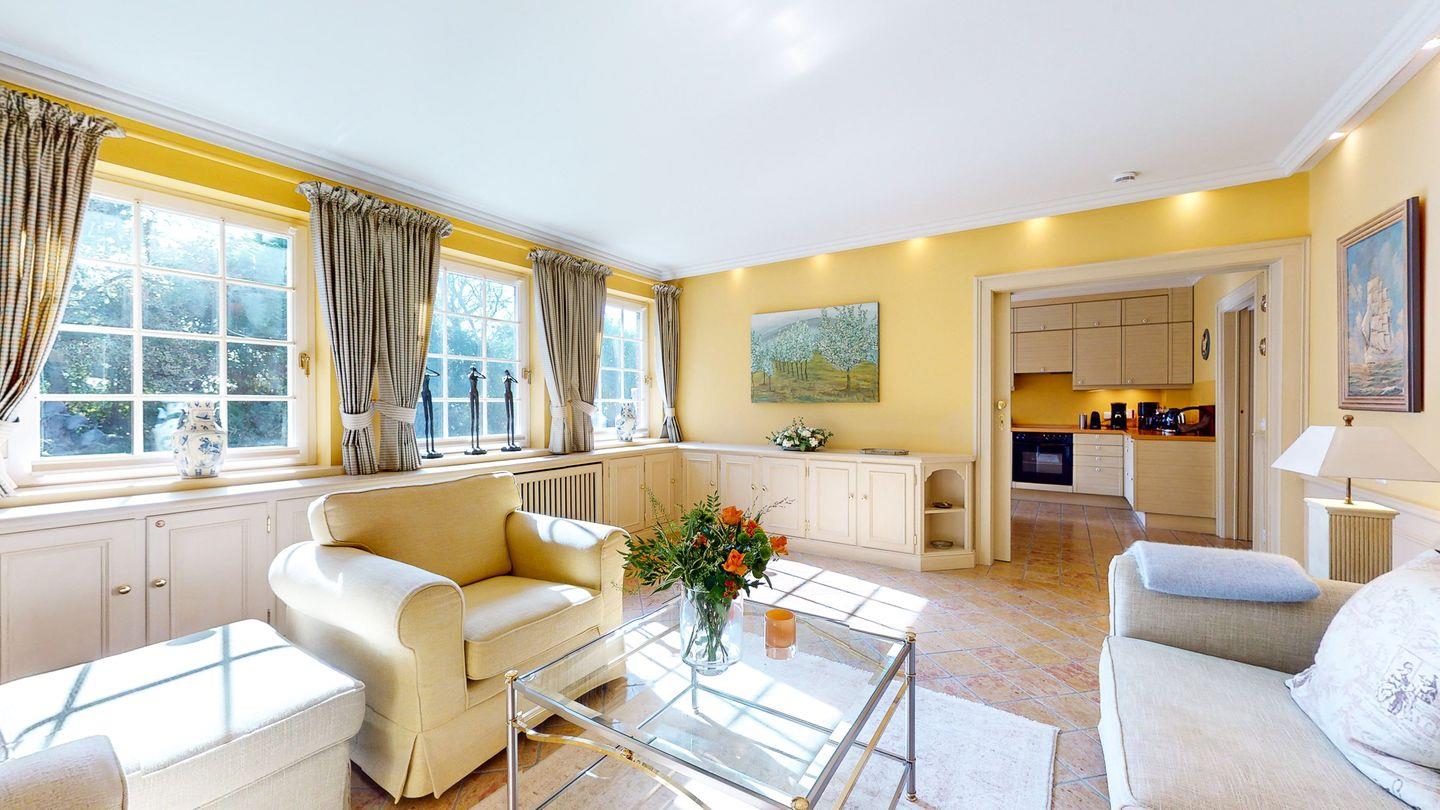 Von hier haben Sie direkten Zugang auf die Terrasse, auf der Sie im eigenen Strandkorb mit Blick auf den schön eingewachsenen Garten die Sonne genießen können. Ein kleiner