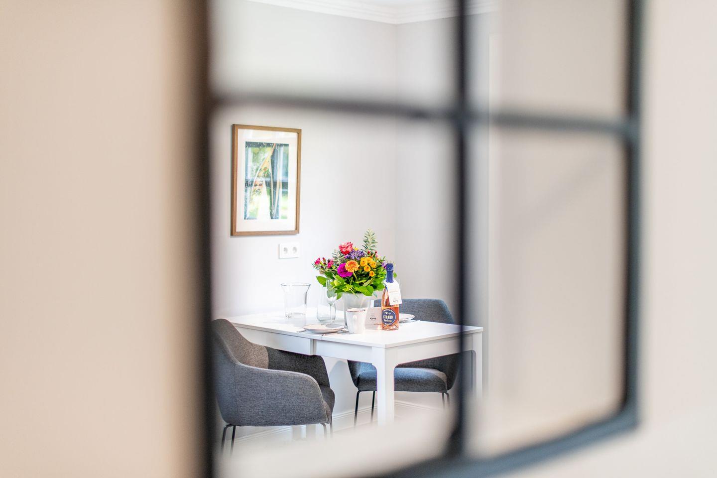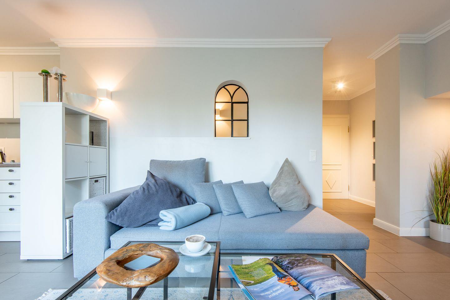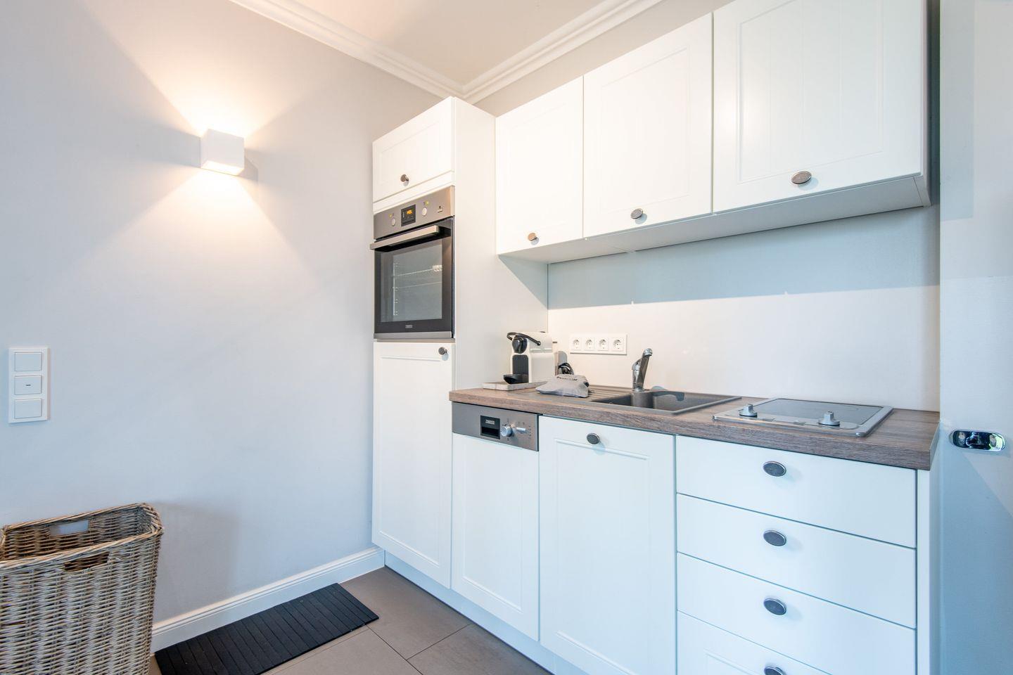 Die offene, vollausgestattete Küche bietet alles, was das Herz begehrt. Ob ein schnelles Frühstück vor einem Tag am Strand oder ein romantisches Abendessen – hier macht Kochen Freude. Hochwertige Küchengeräte und viel Platz zur Zubereitung machen diese Küche zu einem Highlight der Wohnung.