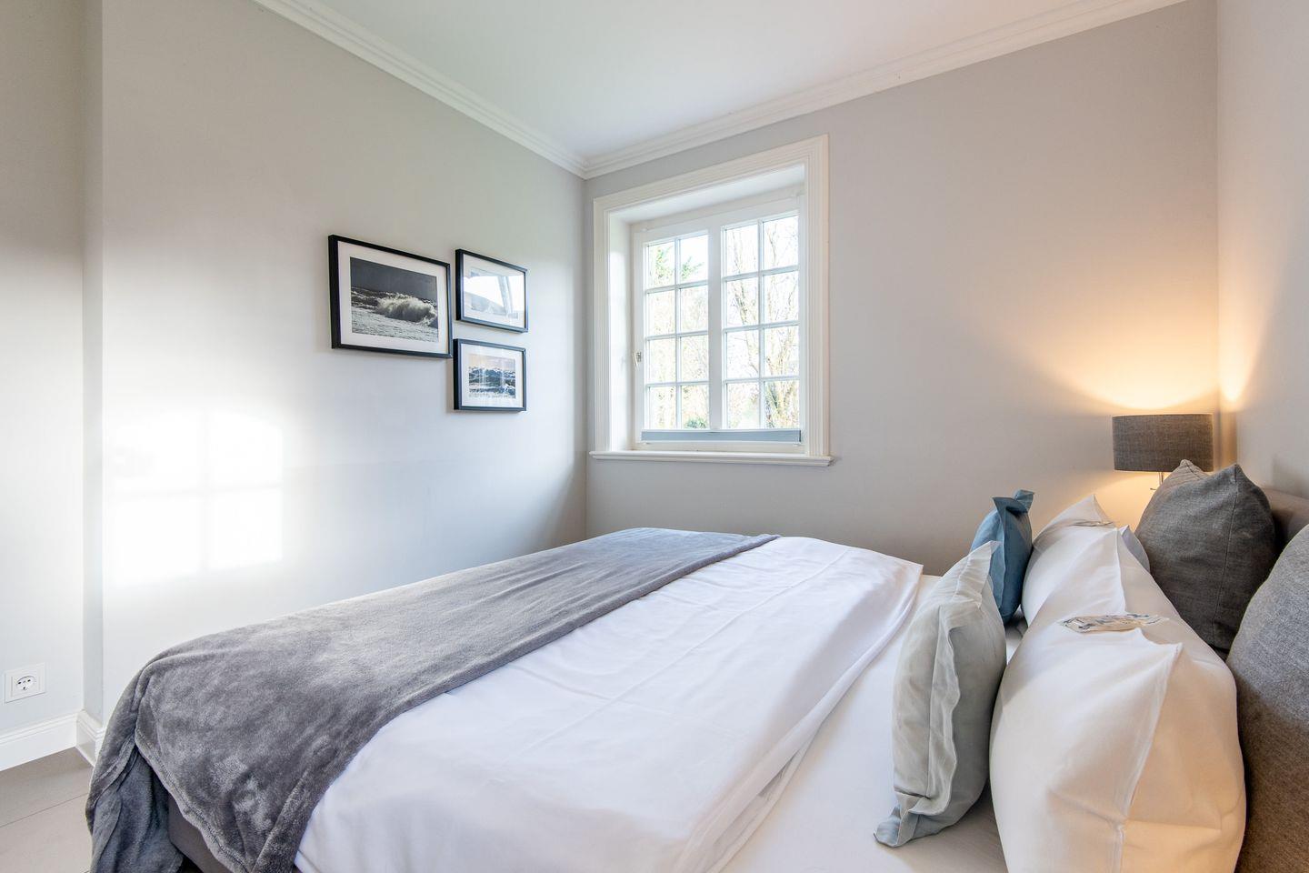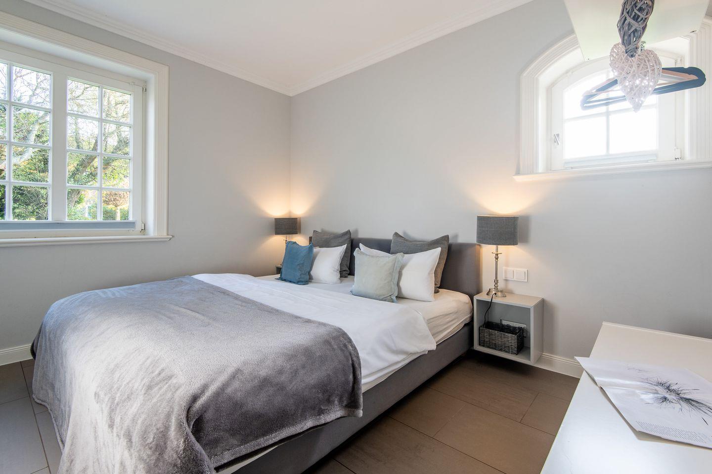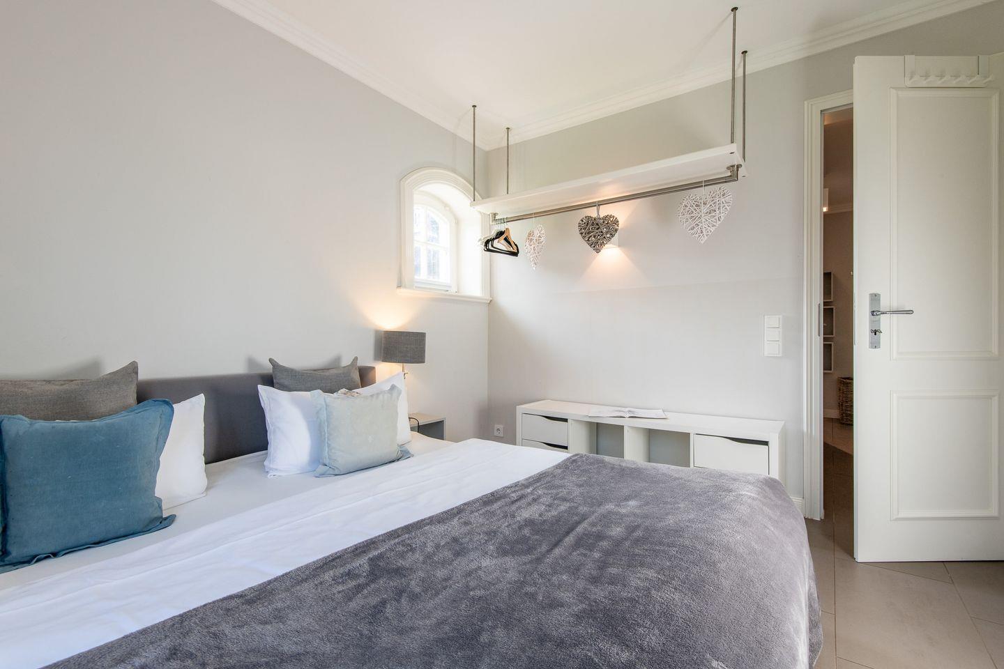 Das Schlafzimmer ist mit einem komfortablen Doppelbett ausgestattet, das erholsame Nächte garantiert. Ein elegantes Design, hochwertige Materialien und ein ruhiges Ambiente machen diesen Raum zu einem Rückzugsort, an dem Sie wunderbar entspannen können.