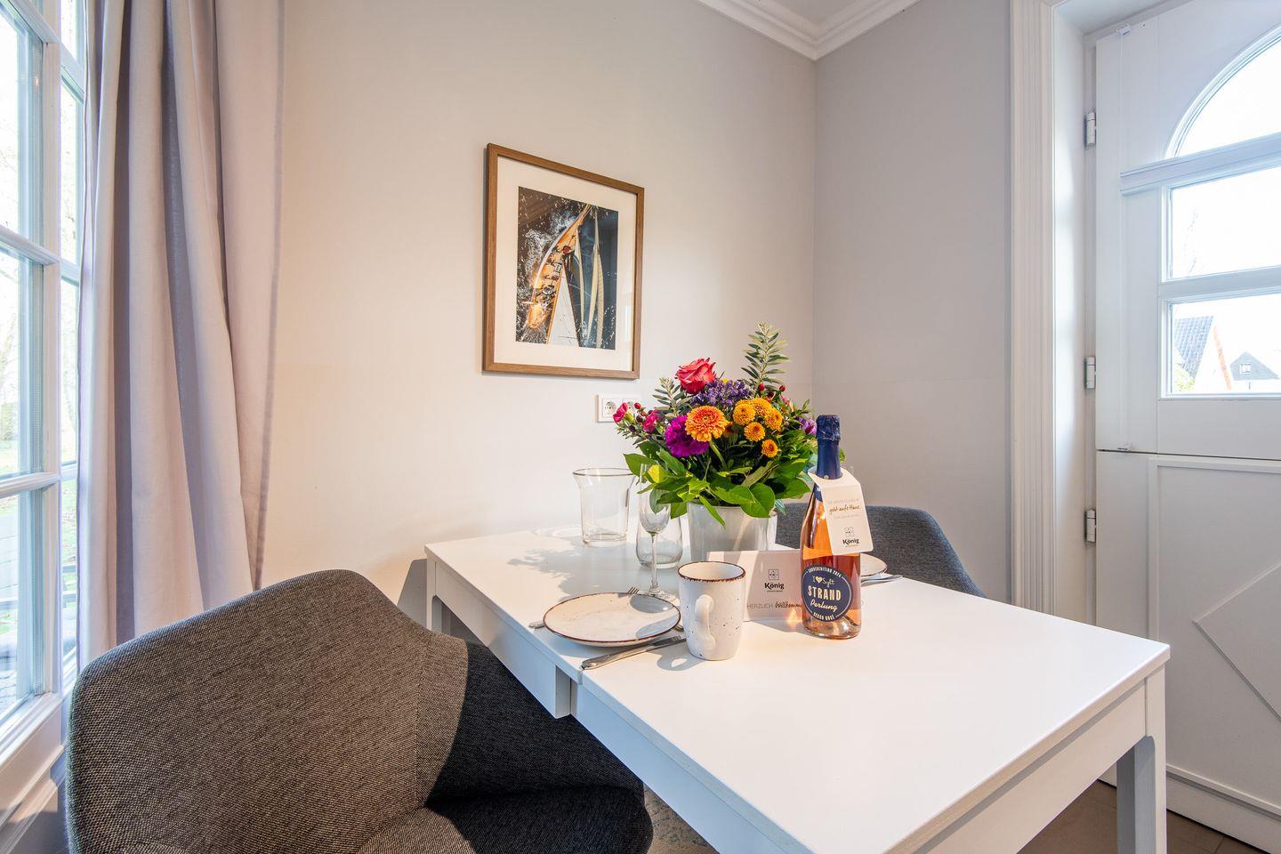1 Schlafzimmer, Badezimmer mit Dusche, offene Küche zum Wohn-/Essbereich, Gartenterrasse, auf dem Gela¨nde der Hotelanlage "Christian VIII", PKW-Stellplatz vorhanden, WLAN (ohne Gewähr), Hunde willkommen.