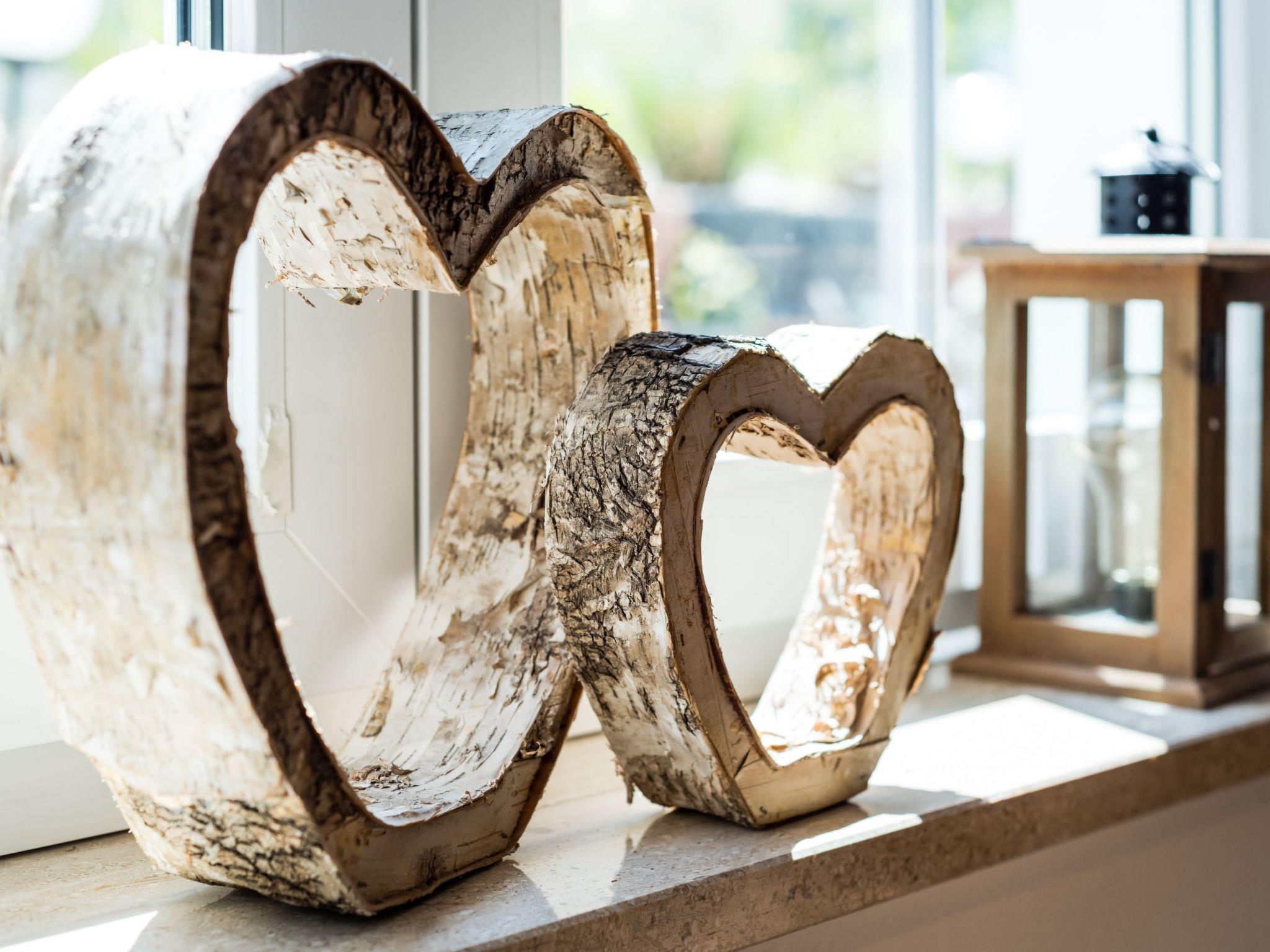 Betritt man die 50 qm große Ferienwohnung, so wird man sogleich von einer offenen, einladenden Wohnstube begrüßt, die keine Wünsche offenlässt. Die ländlich voll ausgestattete Küchenzeile mit Koch- und Essgeschirr, ein rustikaler Esstisch mit vier Stühlen sowie ein gemütliches Ausziehsofa mit Ottomane laden zum Verweilen ein. Für die Unterhaltung sorgt ein 50-Zoll Smart-Fernseher, während ein rustikaler Elektrokamin für wohlige Hüttenatmosphäre sorgt. Nebenan befindet sich das holzverkleidete Schlafzimmer mit einem motorisch verstellbaren Boxspringbett und direktem Zugang zum hellen Bad, das mit einer begehbaren Regendusche, Waschtisch, WC, Hygieneartikeln für den ersten Tag und einem Föhn ausgestattet ist.