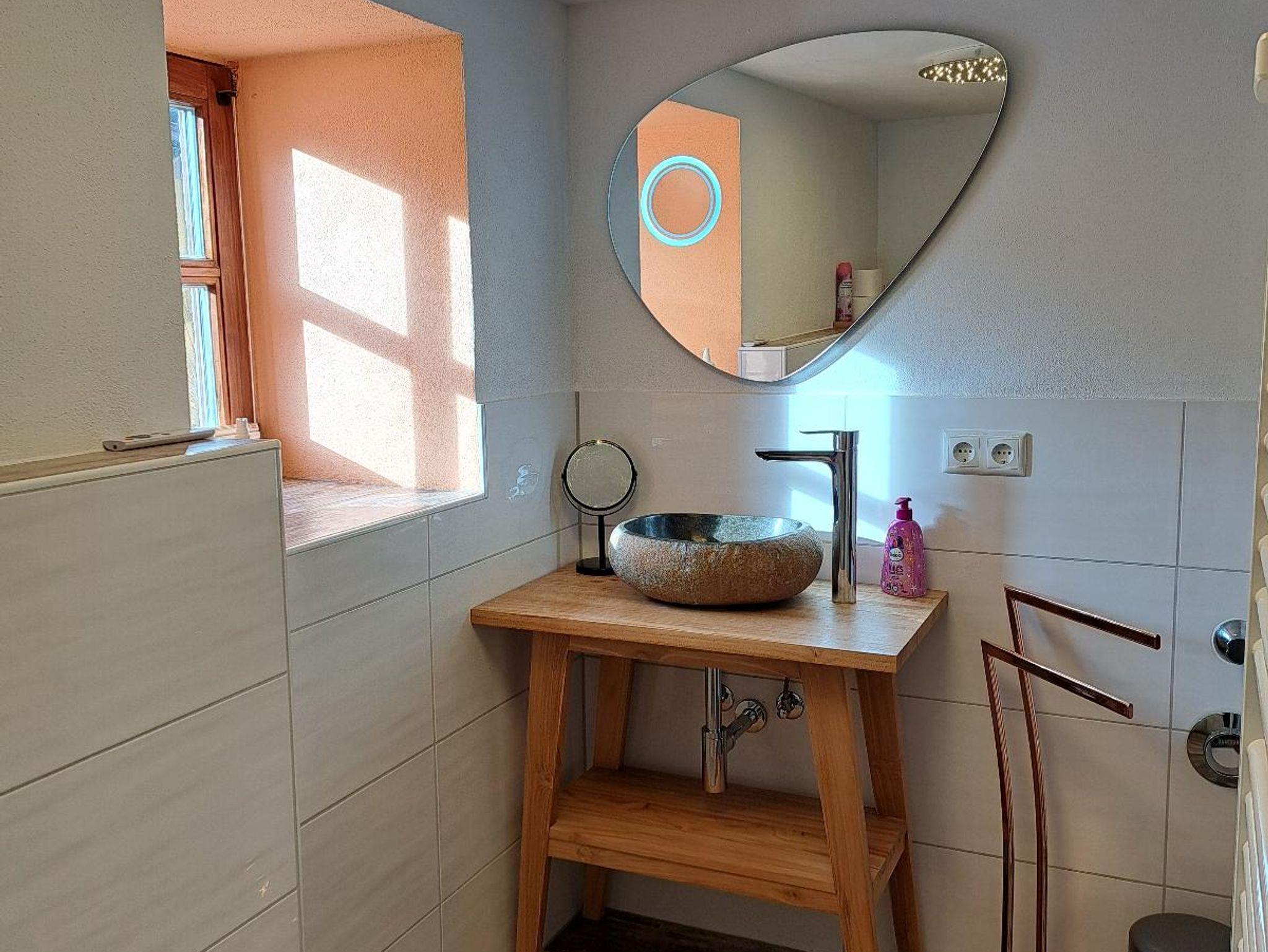 Unsere schöne 4-Zimmer-Ferienwohnung befindet sich im Erdgeschoss des Hauses Gerda. Sie ist für bis zu 6 Erwachsene nutzbar. Zu beachten sind die niedrigen Decken, welche der Wohnung Gemütlichkeit verleihen, ohne drückend und beengt zur wirken. (- Niedrigester Punkt: Decke in der Dusche ca. 1,95 m - ).