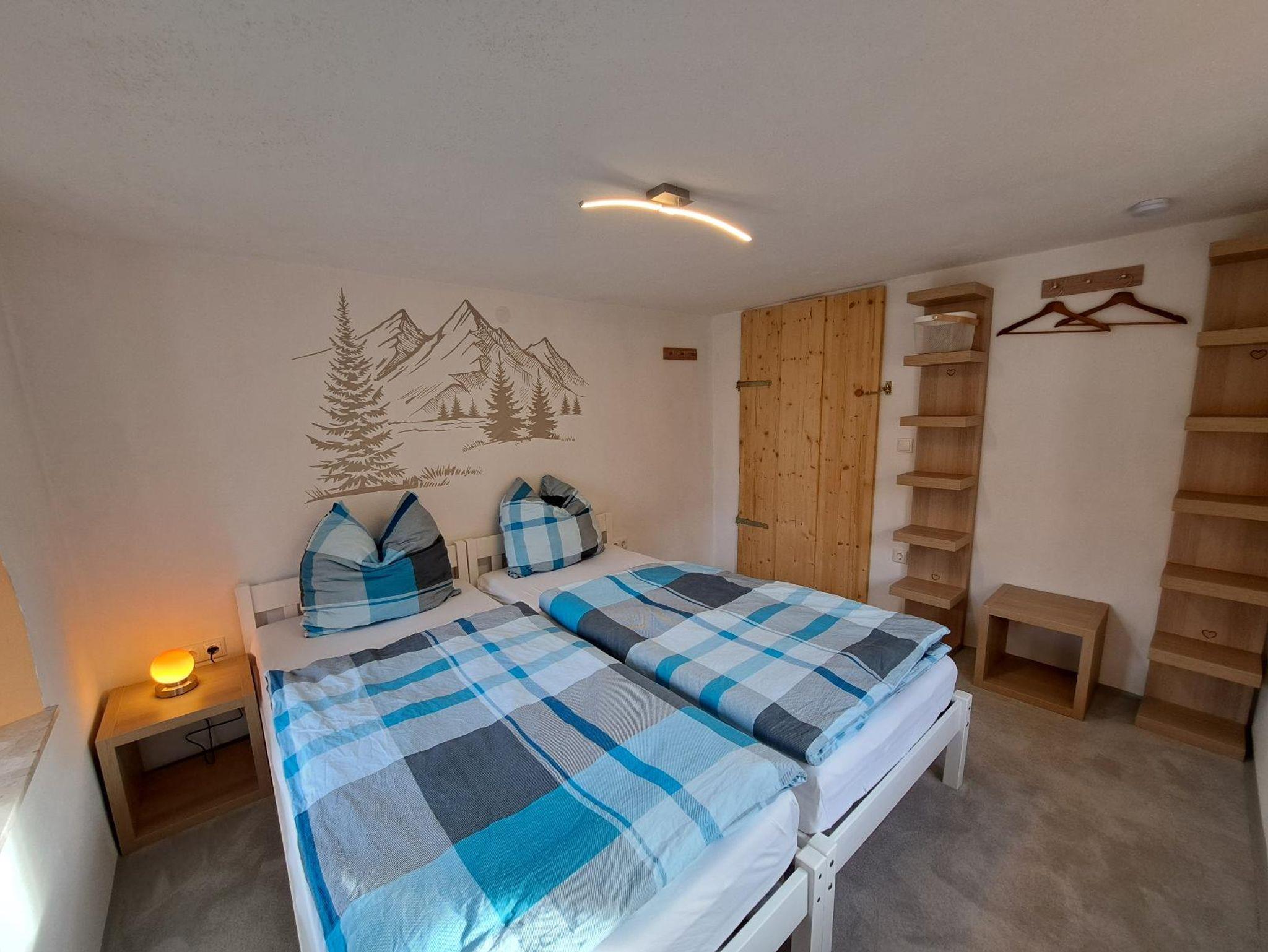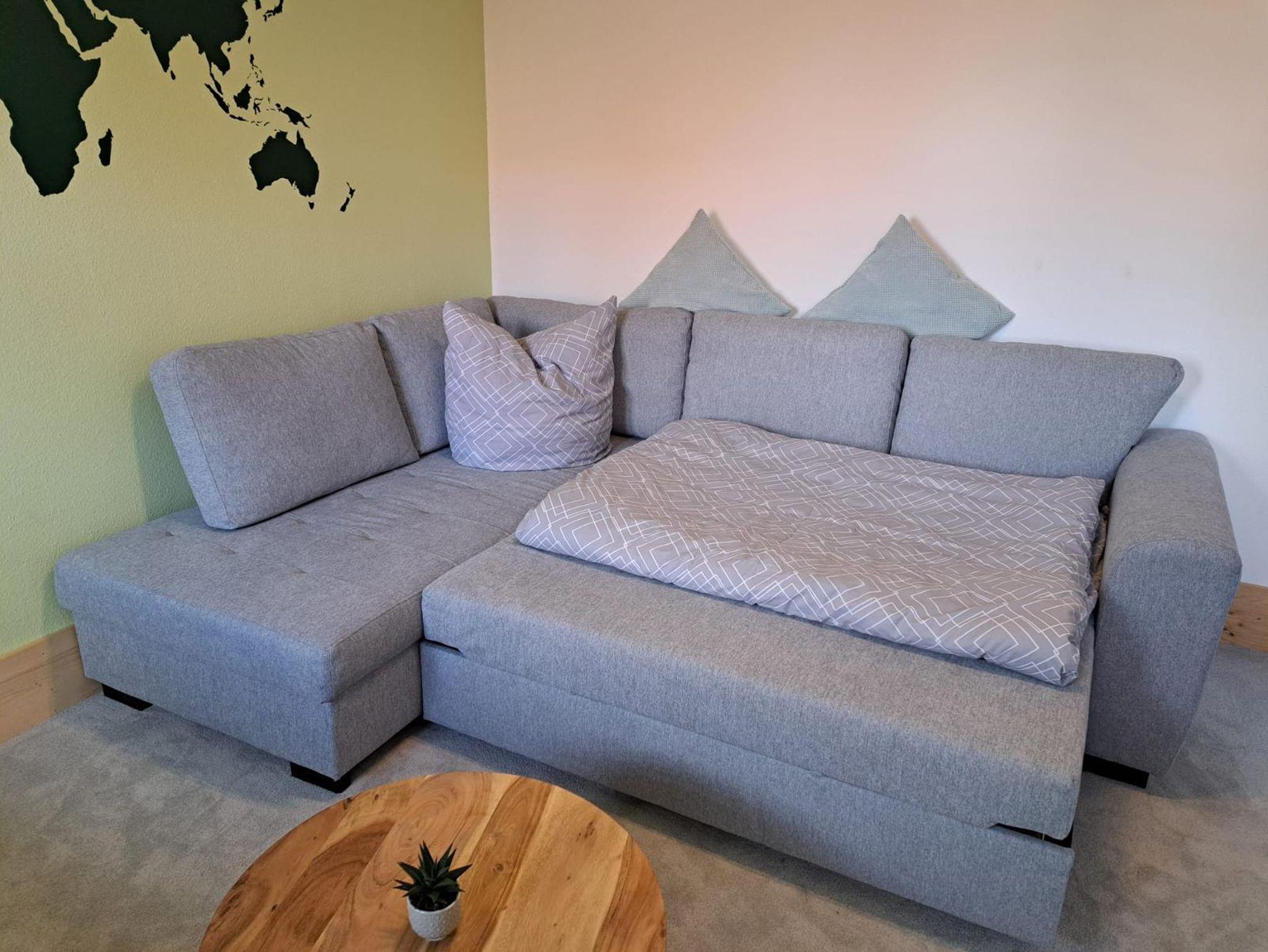 Es befindet sich ein Doppelbett (1,80 m) im großzügig geschnittenen Schlafzimmer 1 und zwei 90er Betten im Schlafzimmer 2, welche zusammengeschoben sind. Das Wohnzimmer verfügt über eine ausziehbare Couch, welche dann eine Liegefläche von ca.138 cm hat. Der vierte Raum der Wohnung kann sowohl von den Kindern als Spielzimmer, als Rückzugsort, als weiterer Stauraum für beispielsweise Kleidung und Gepäck oder für eine weitere Person als Schlafraum verwendet werden. Die darin stehende Couch kann ebenfalls schnell und einfach als Schlafcouch umfunktioniert werden und hat dann eine Liegefläche von 120 cm.