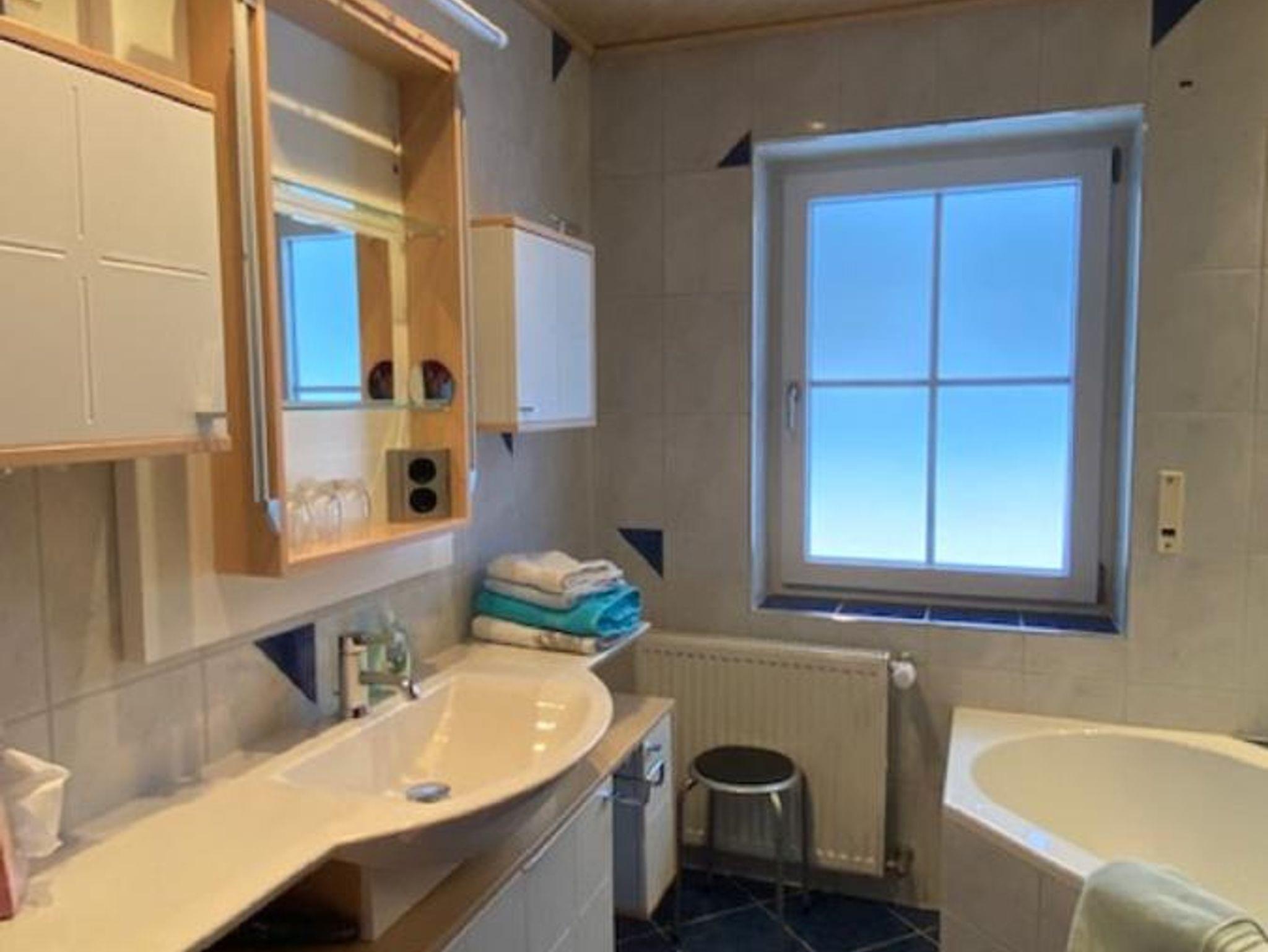 Großzügige Ferienwohnung im 1. Stock mit 4 Schlafzimmern (100 qm!). Großes Wohnzimmer mir Küchenzeile und Essbereich. Bad mit großer Eckbadewanne, zweites Bad mit Dusche. Einmalige Sonnenterrasse (70 qm) mit Terrassenmöbeln und Sonnenliegen.