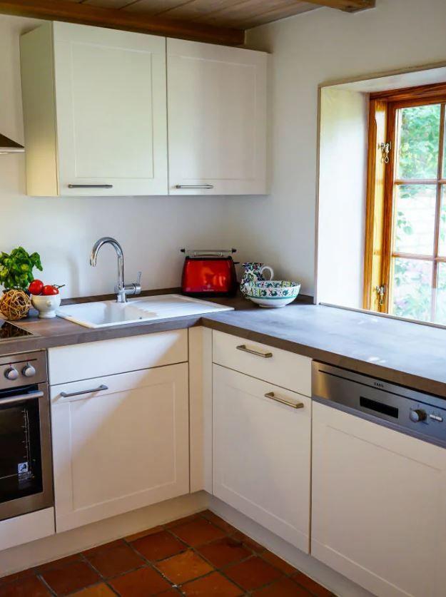 Der kombinierte Wohn- und Essbereich lädt zum Verweilen ein. Hier finden Sie einen Esstisch, bequeme Sessel und ein Sofa – ideal für gesellige Abende oder entspannte Stunden mit der Familie - für wohlige Wärme an kalten Tagen sorgt der Kamin. Die offene Küche ist modern eingerichtet und lässt keine Wünsche offen: Sie verfügt über ein Cerankochfeld, einen Backofen, einen Kühlschrank mit Gefrierfach sowie eine Spülmaschine. Für Kaffeeliebhaber stehen eine Filterkaffeemaschine, eine Padmaschine, ein Wasserkocher und ein Toaster bereit.