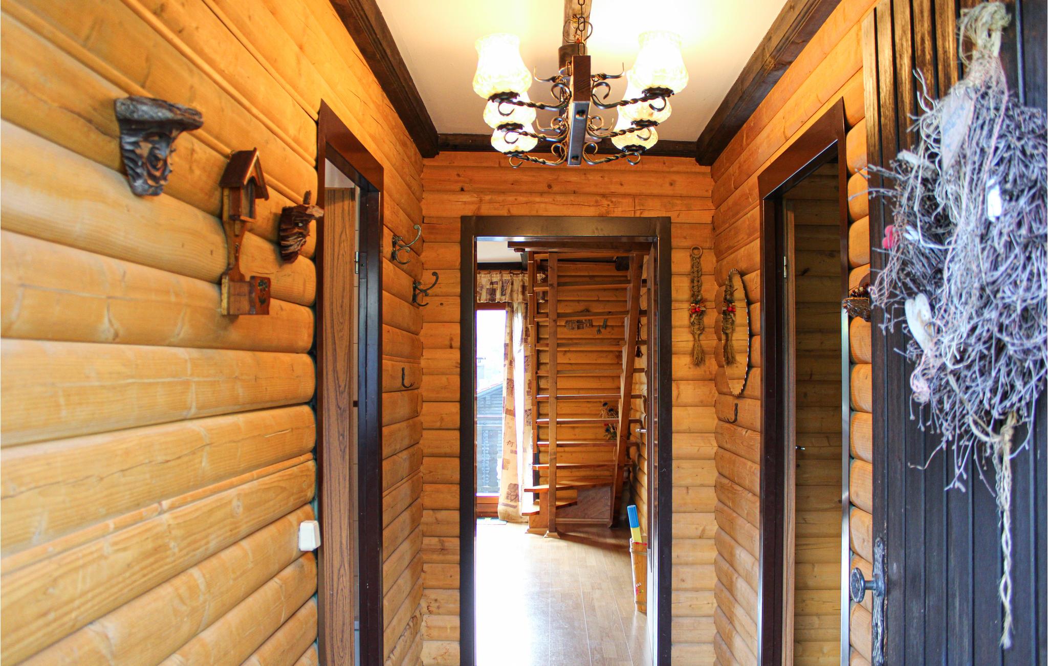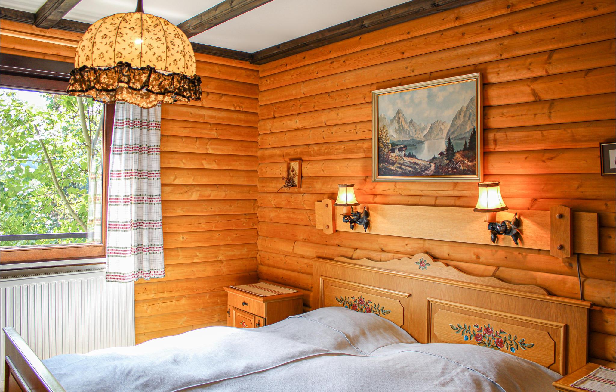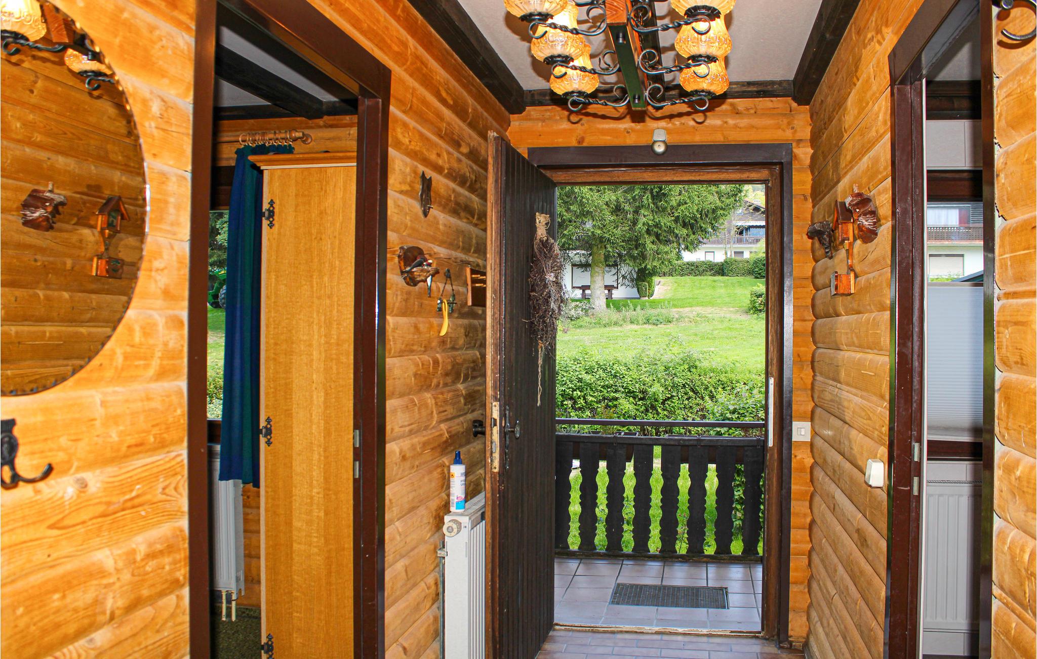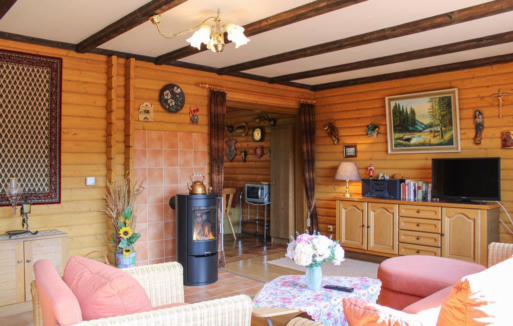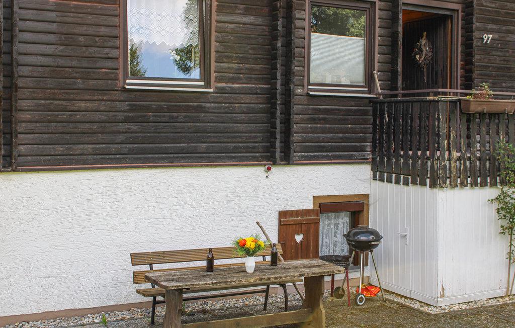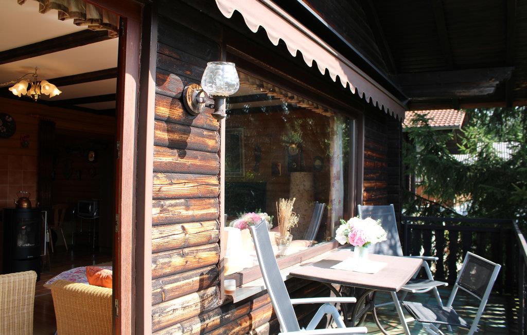 Sie erreichen die großzügig geschnittene Ferienwohnung im ersten Obergeschoss über die Außentreppe des im Blockhausstil erbauten Ferienhauses.